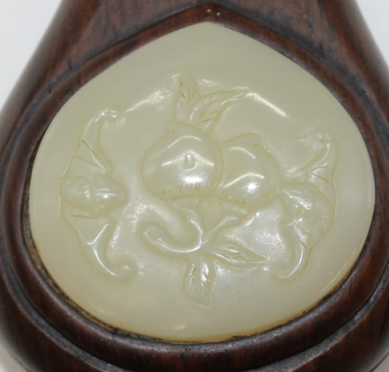 酸枝木镶白玉如意