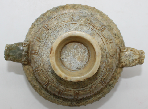 和田玉雕古纹瑞兽耳炉器