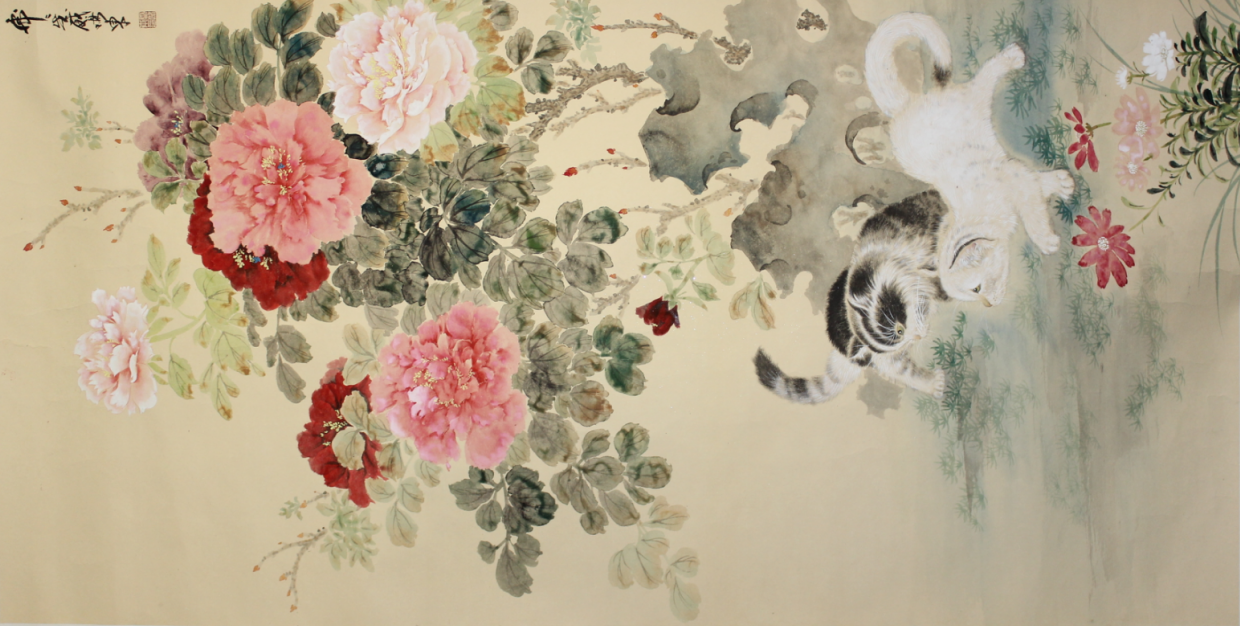 雷鸣东花卉猫趣图