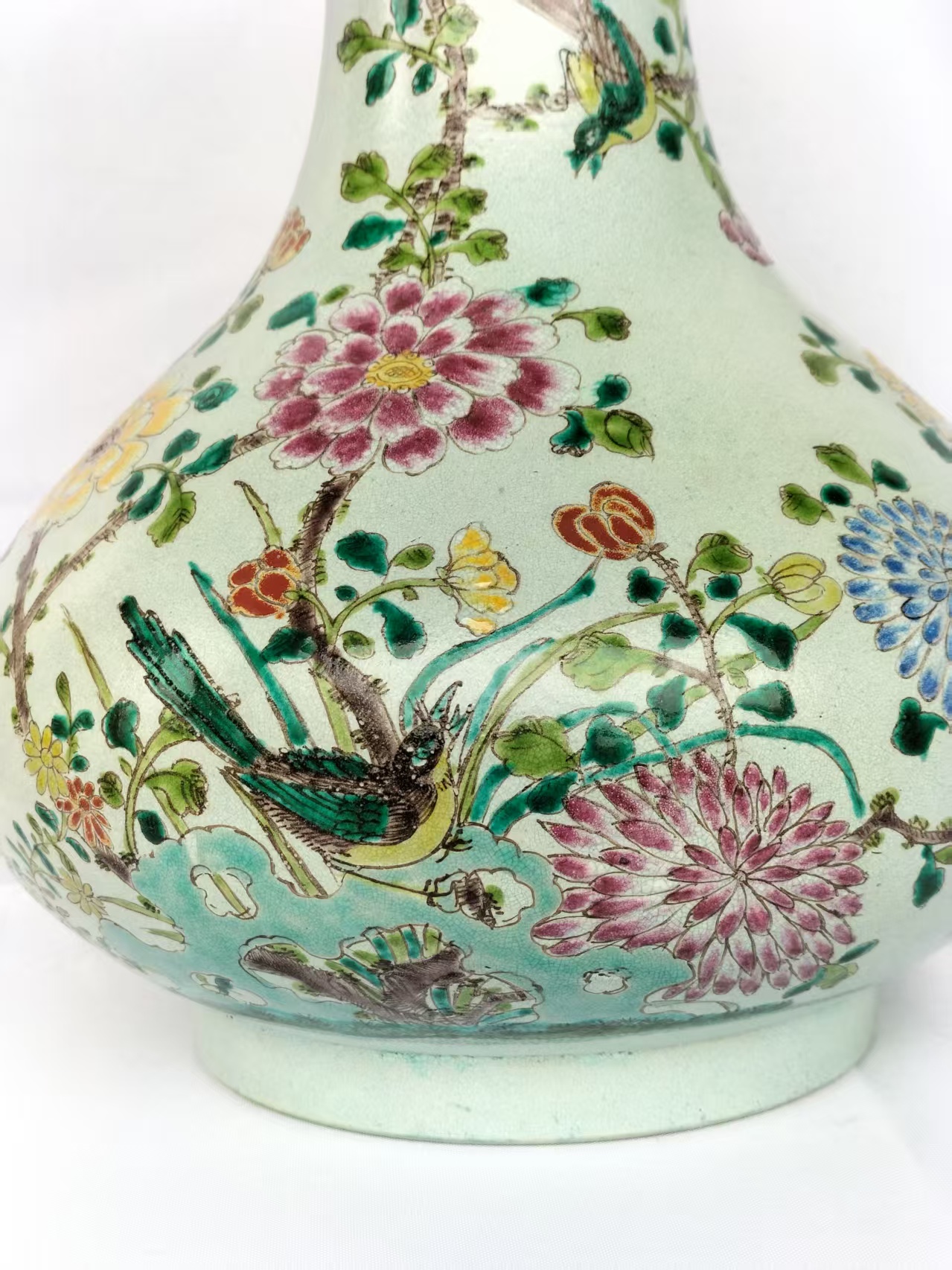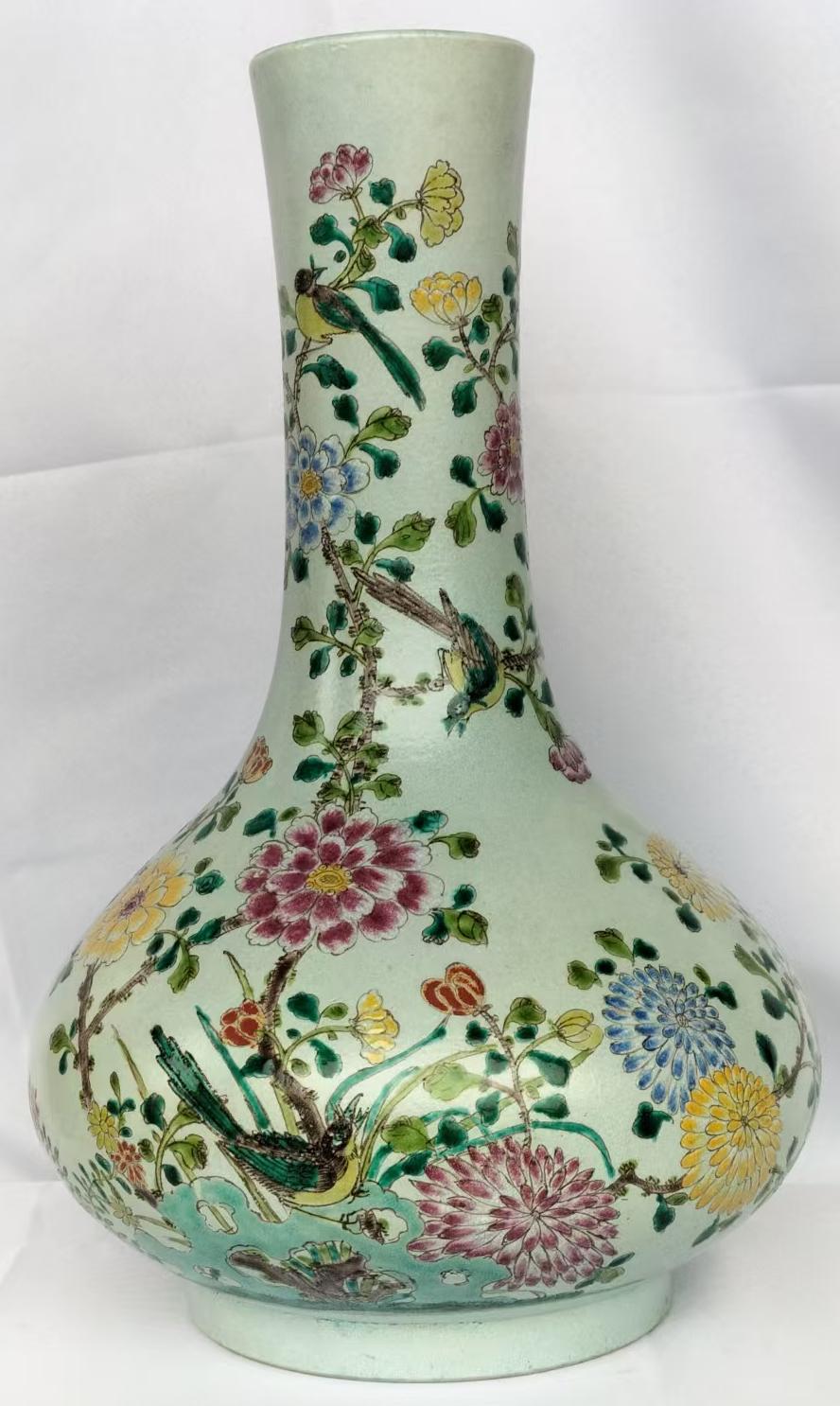 五彩花鸟荸荠瓶 高35cm*口7cm*底13cm