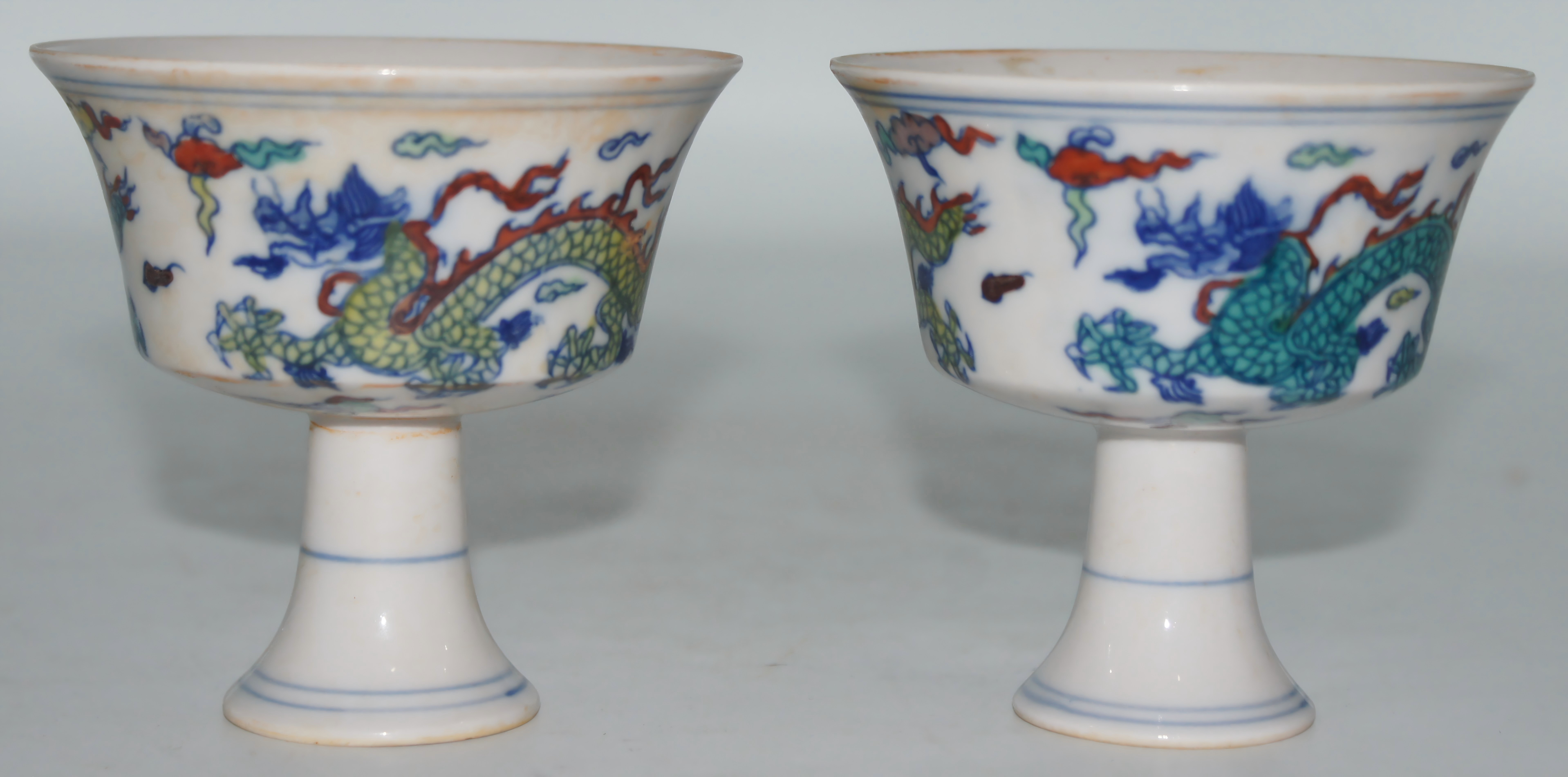 斗彩龙纹高足杯 口8*高8cm