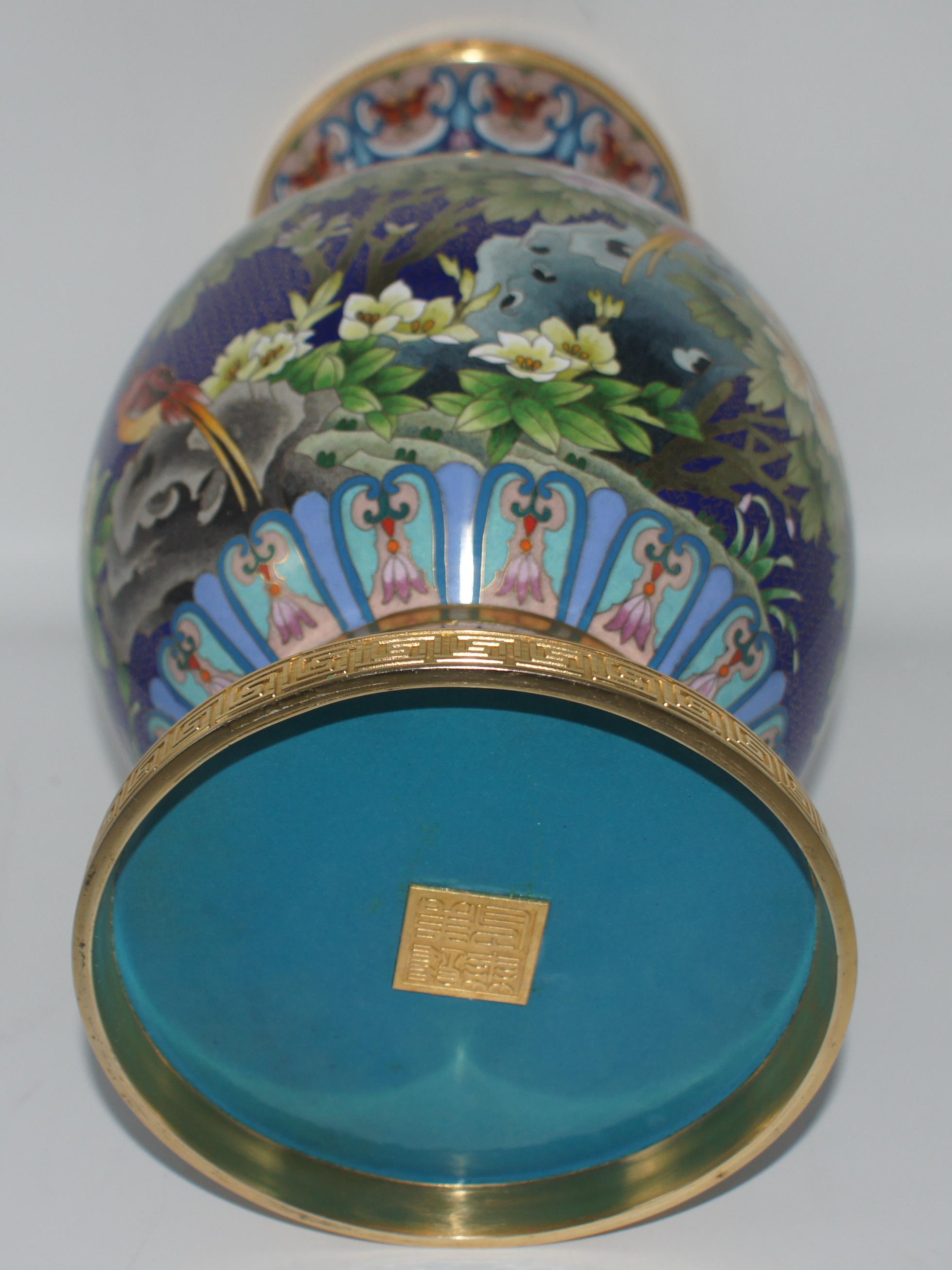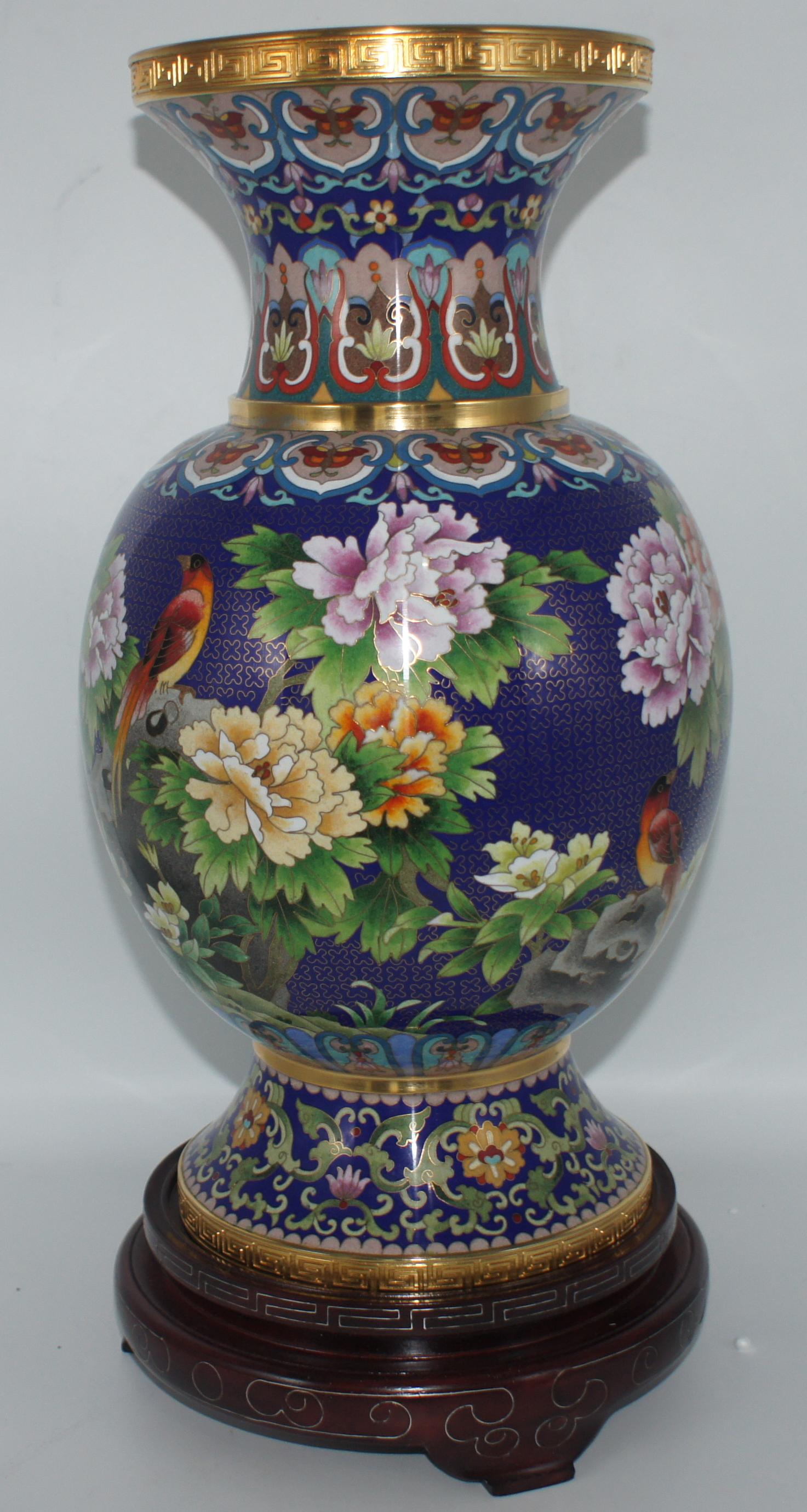 钱美华 景泰蓝富贵花鸟尊 口17*高39.5cm