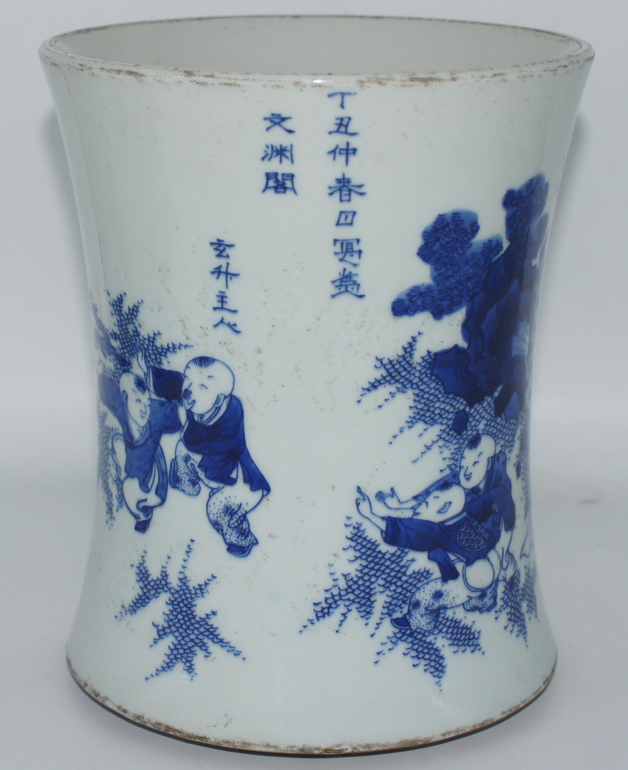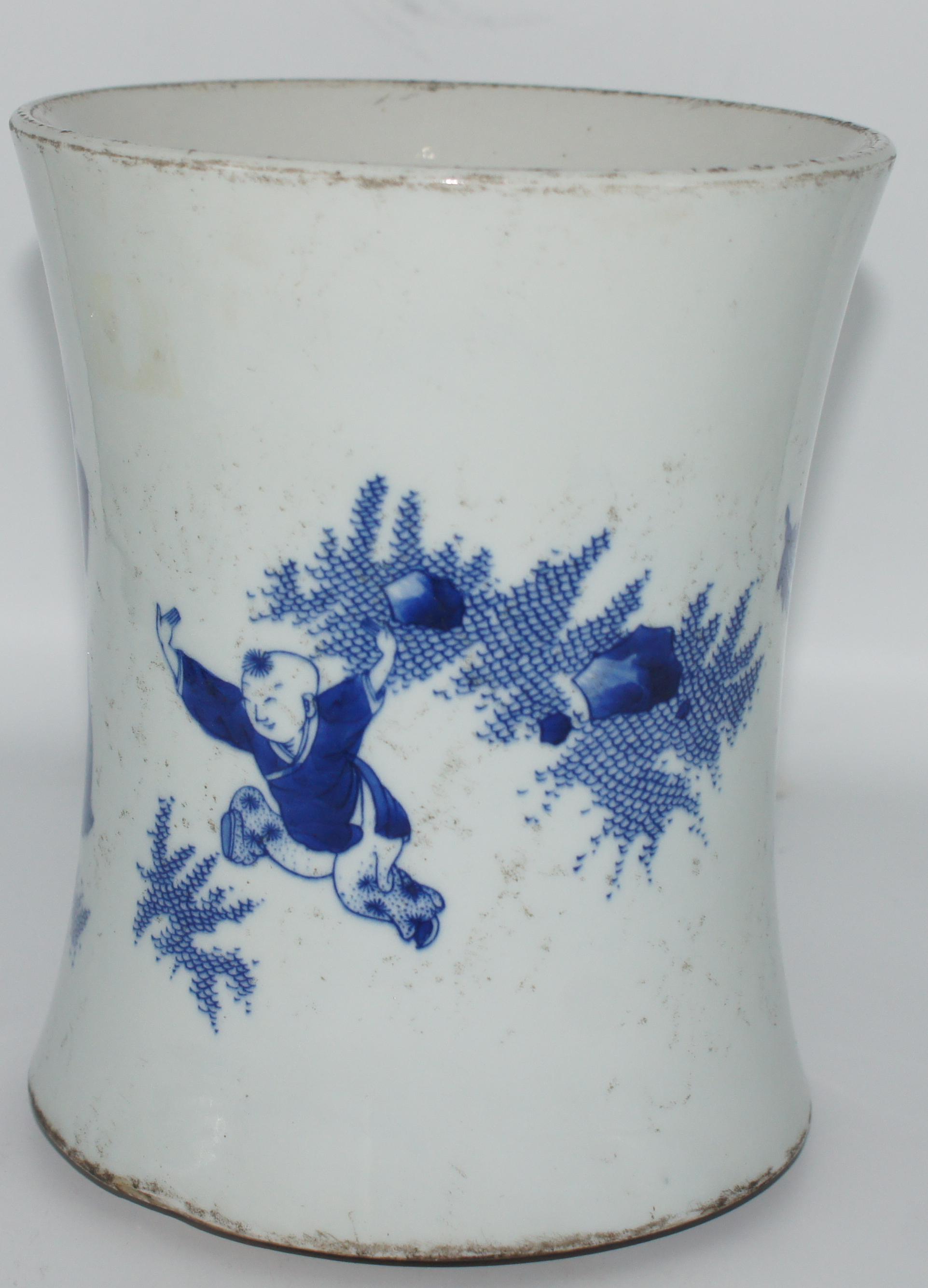 青花人物笔筒 口16*高19cm
