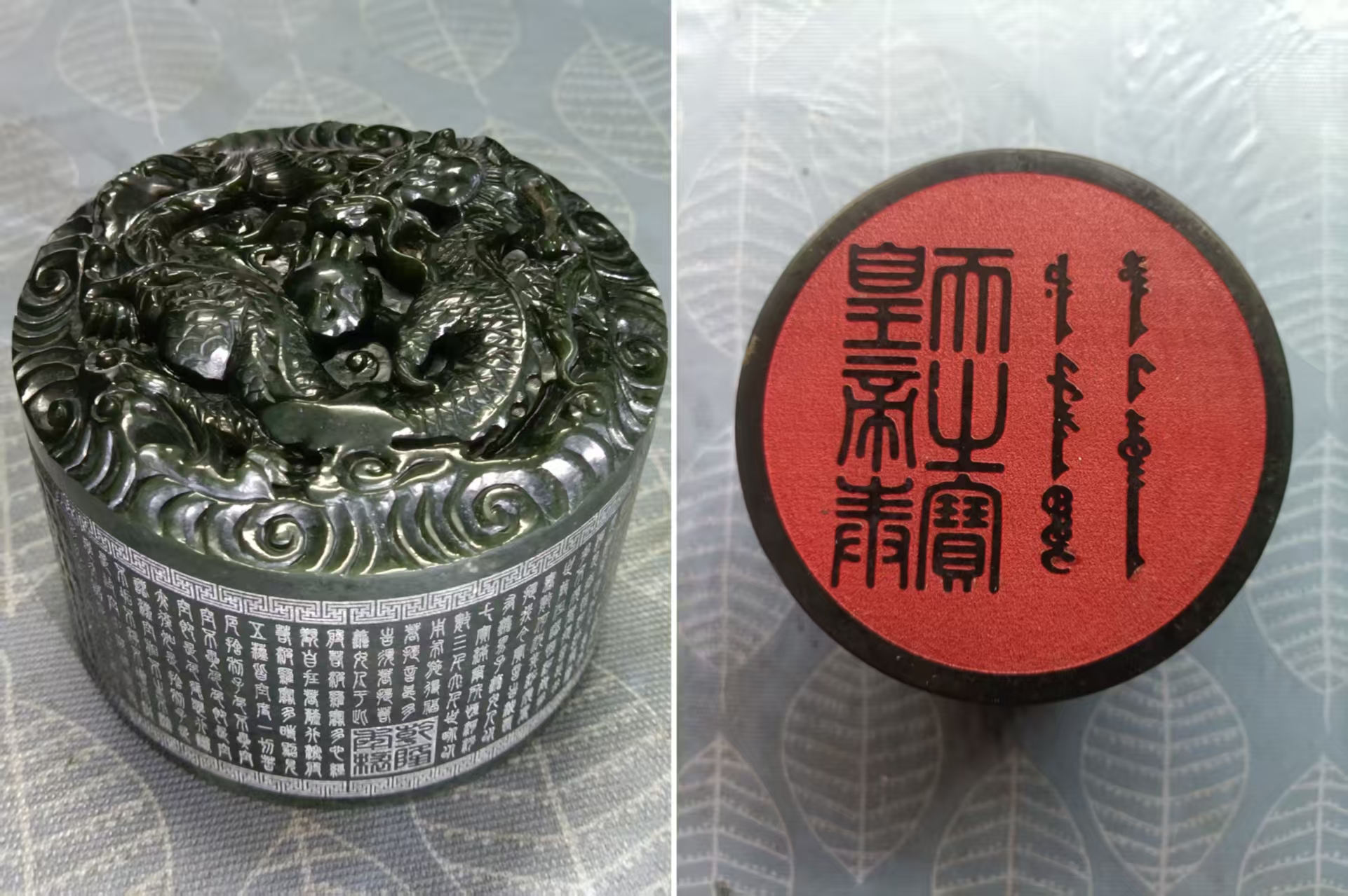 乾隆二十五宝和田碧玉“皇帝奉天之宝”圆玺 1842.2g