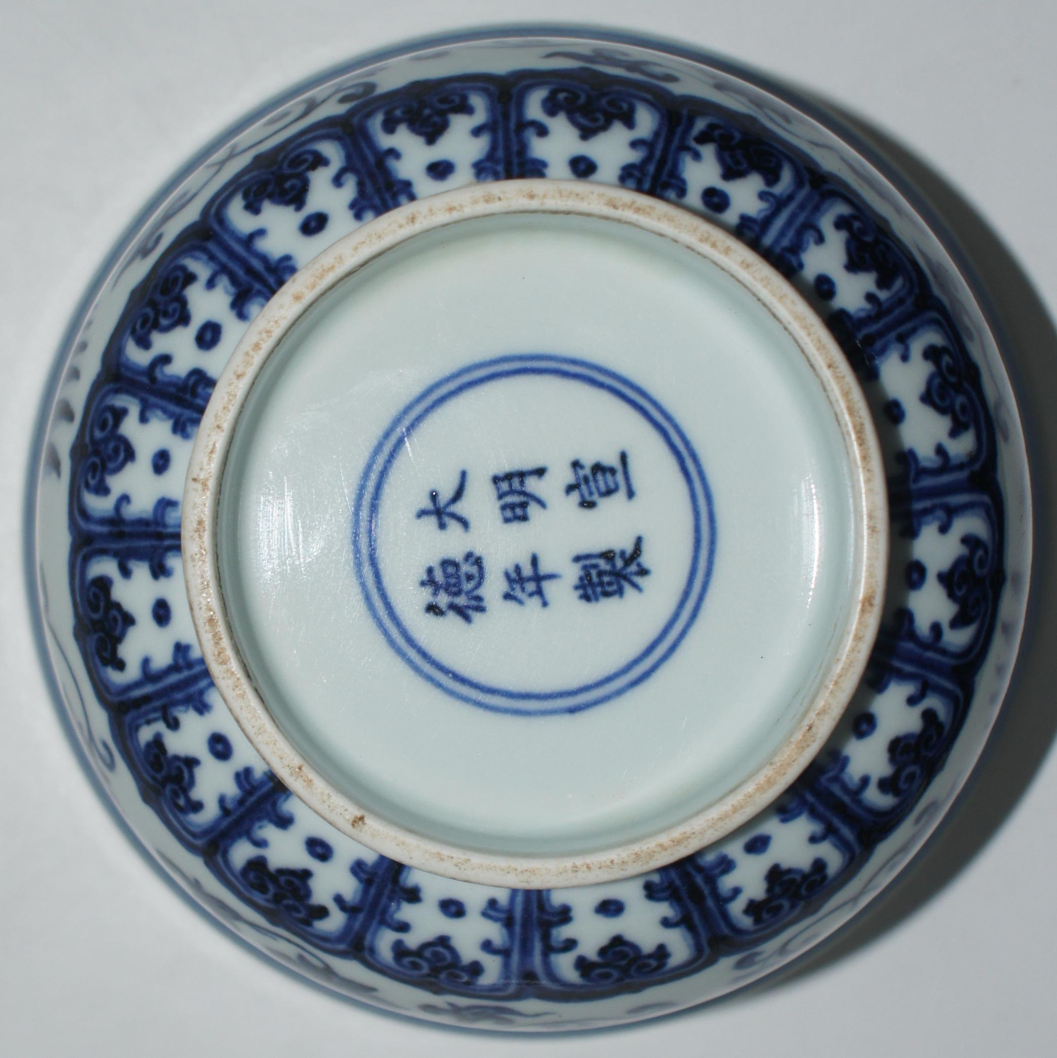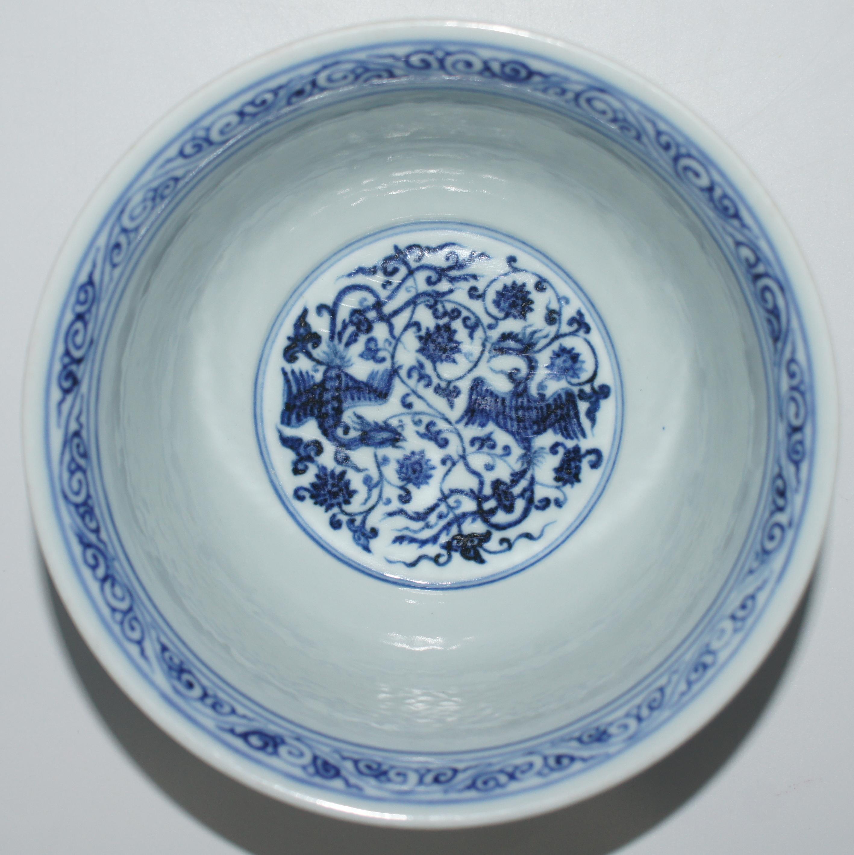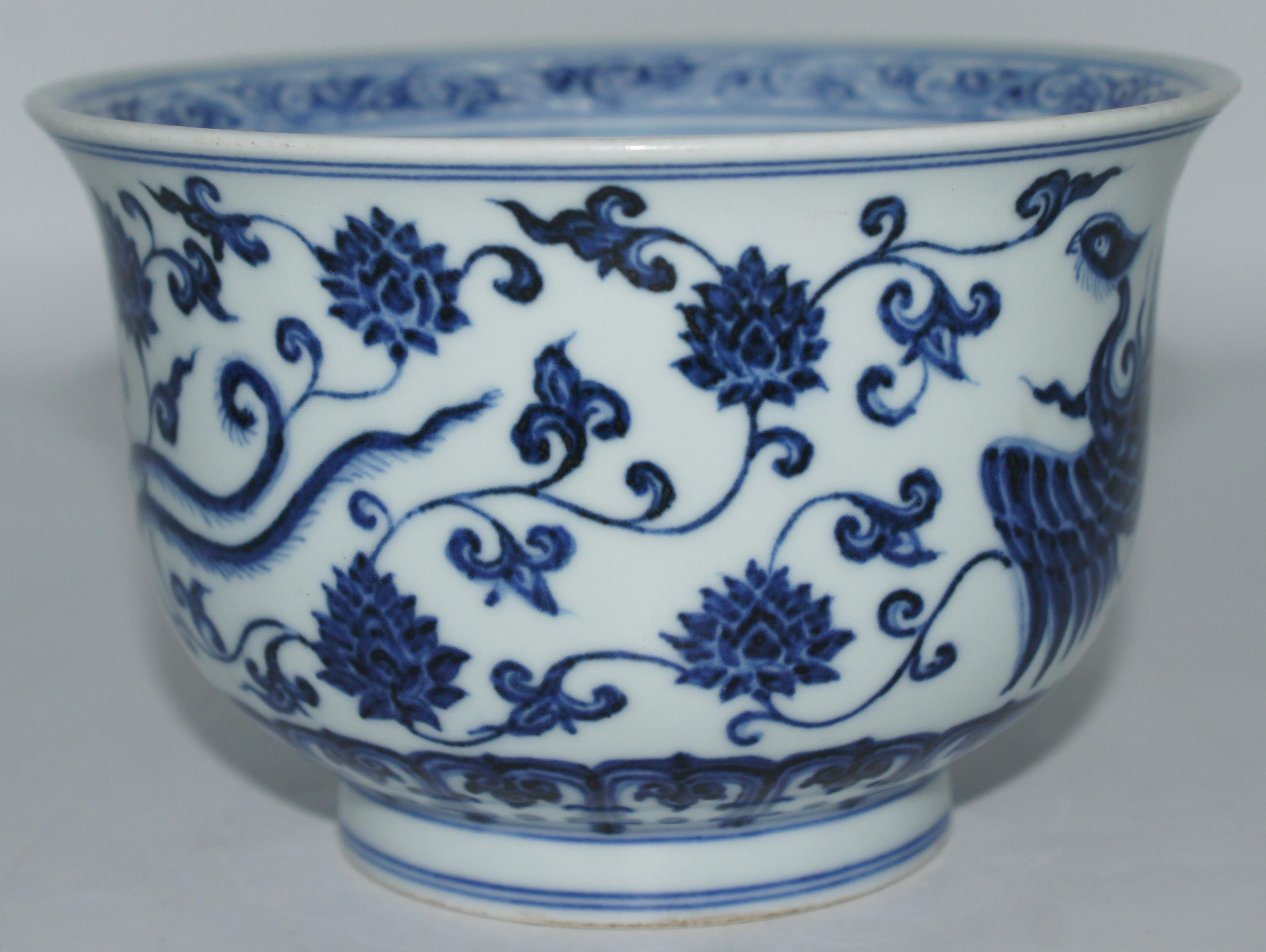 大明宣德款 青花缠枝莲凤纹金钟碗 口15.5*高10cm