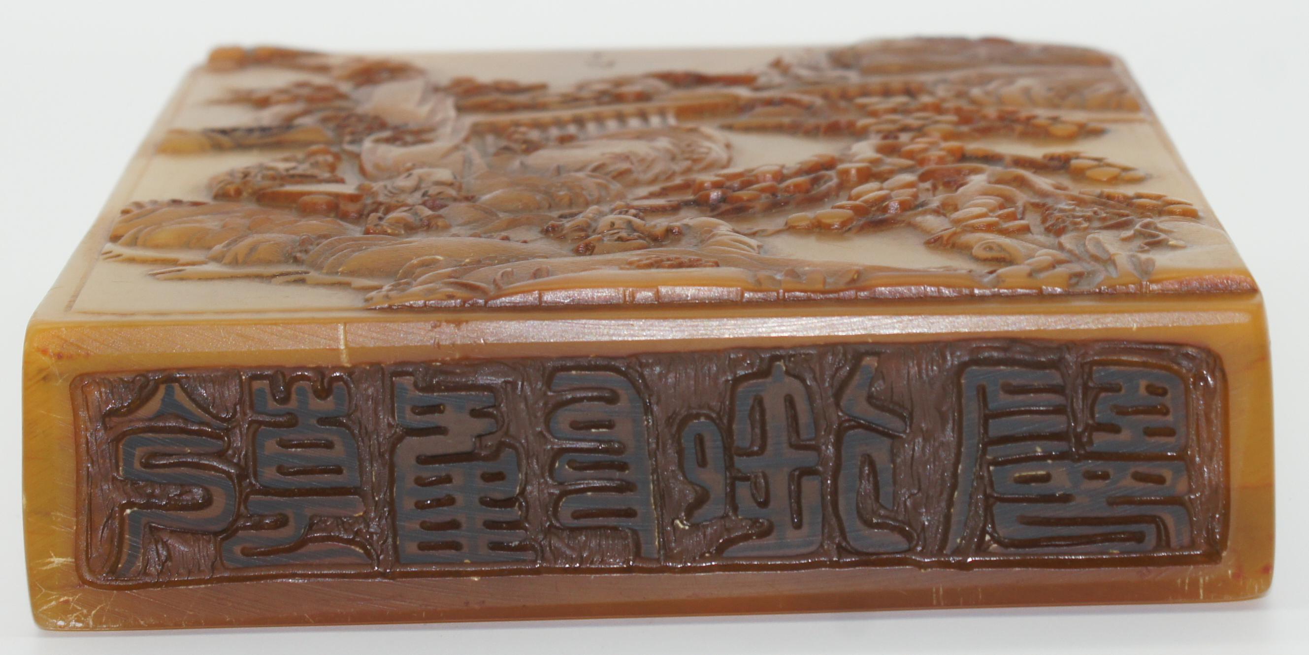 田黄石浅浮雕高仕访友图乾隆御览宝玺 长14.5* 宽4*高20cm3千克余