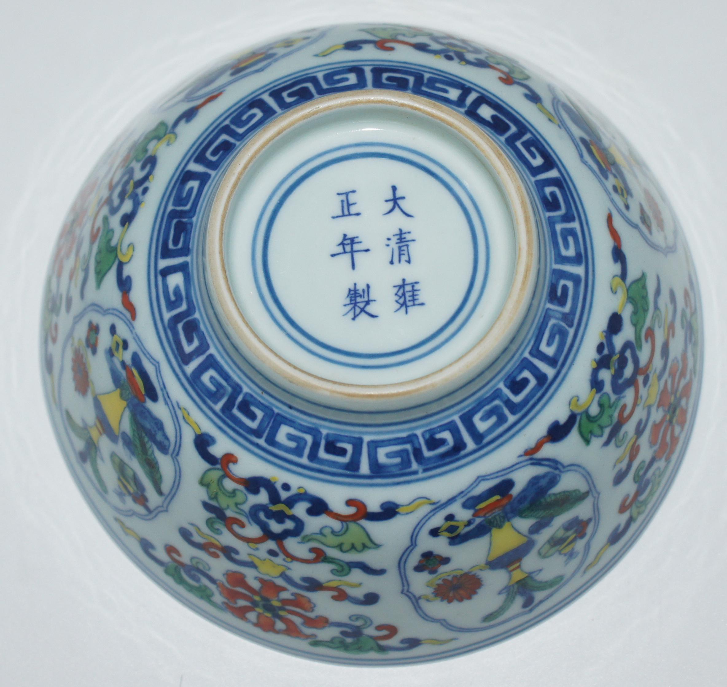 大清雍正款 斗彩花卉开窗清供图碗 口14*高6.5cm