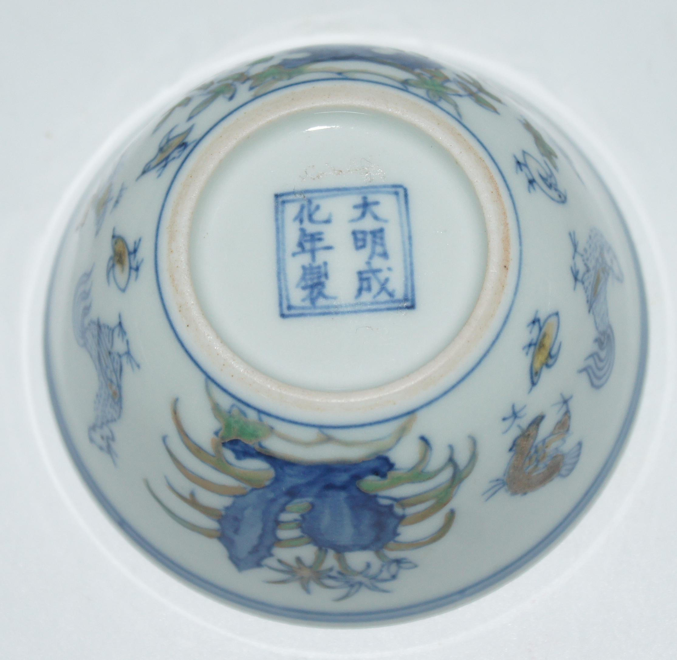 大明成化款 斗彩鸡缸杯 口8.5*高4cm