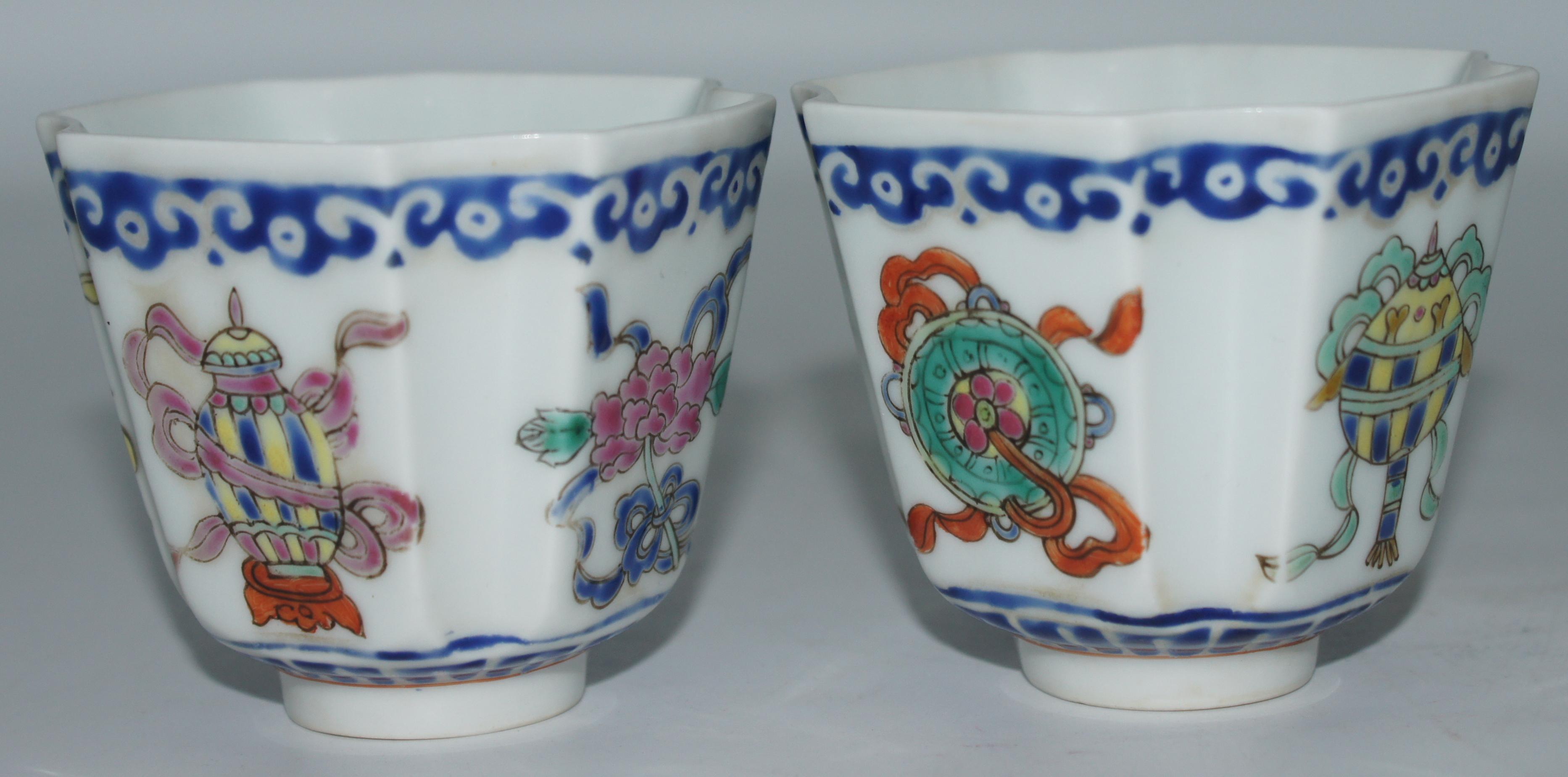 大清同治年制款 珐琅彩暗八仙亚型杯一对 口7.*高6cm