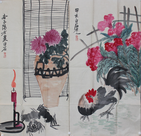 花鸟四条屏-齐白石款