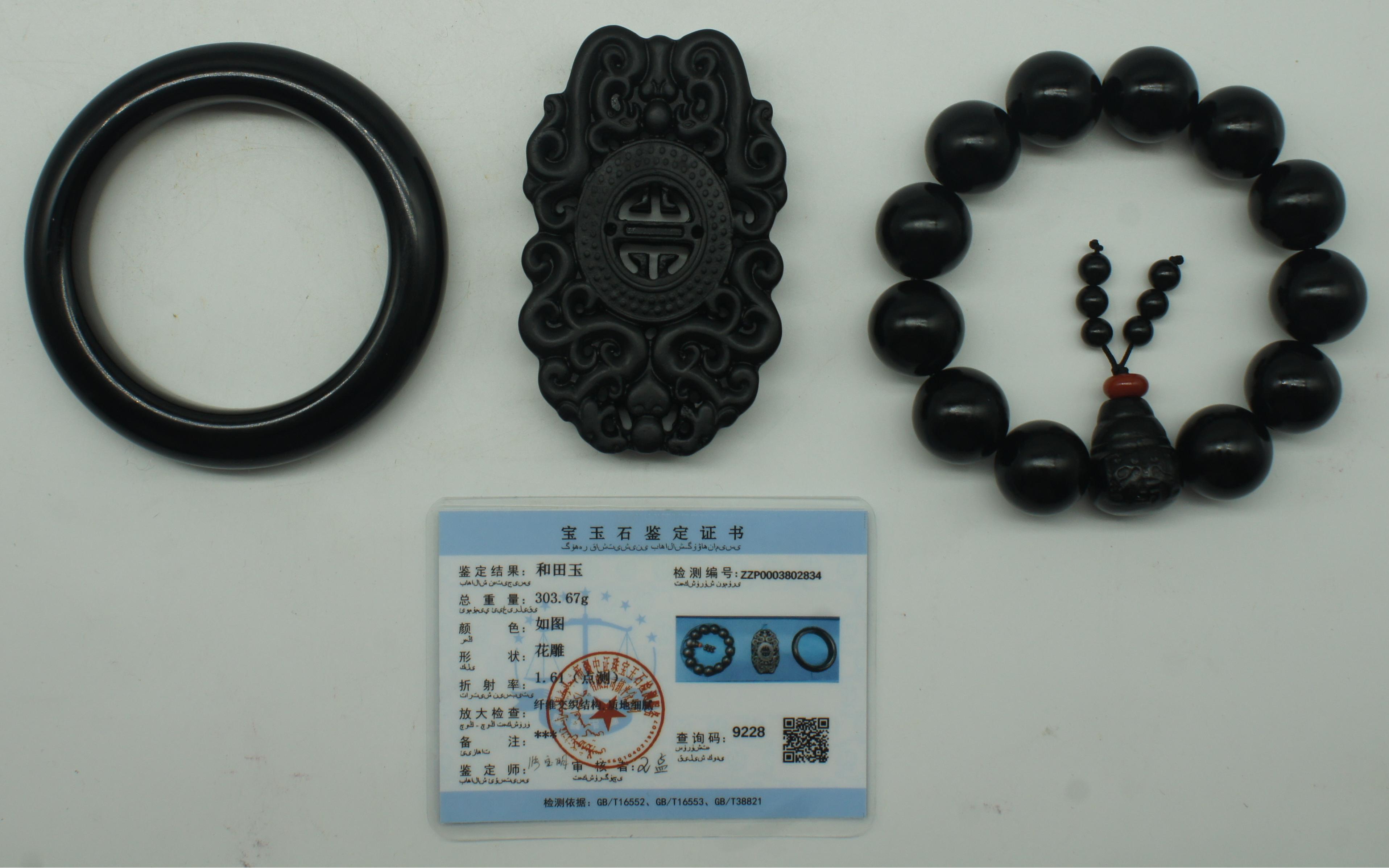和田玉墨玉花雕一组 303.67g