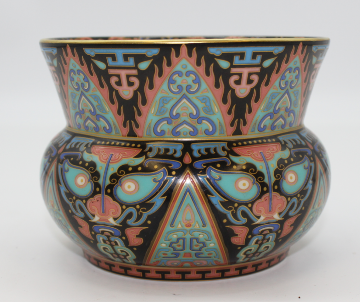墨釉地粉彩渣斗
