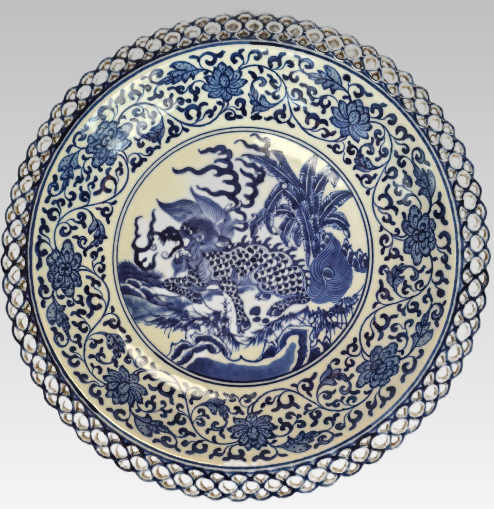 外团寿纹内麒麟缠枝花卉镂空赏盘