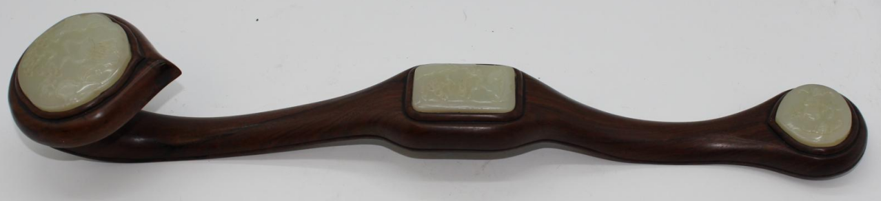 酸枝木镶白玉如意