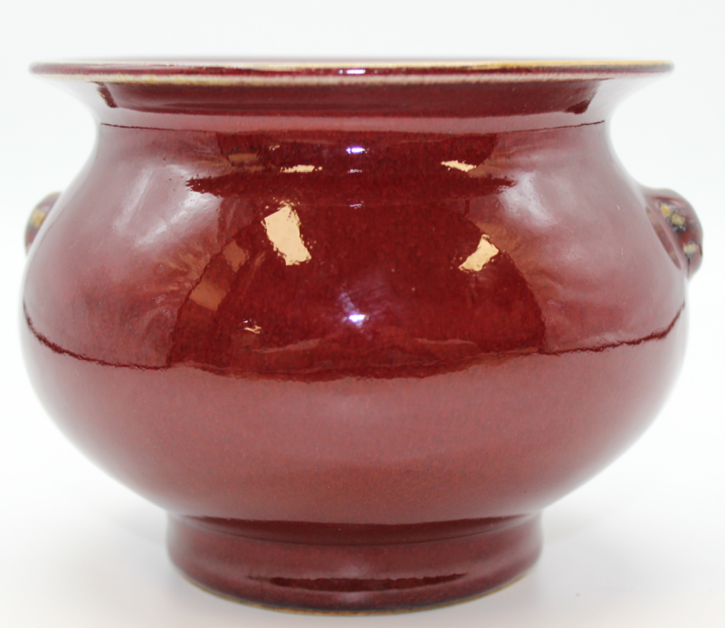 红釉双兽耳香炉