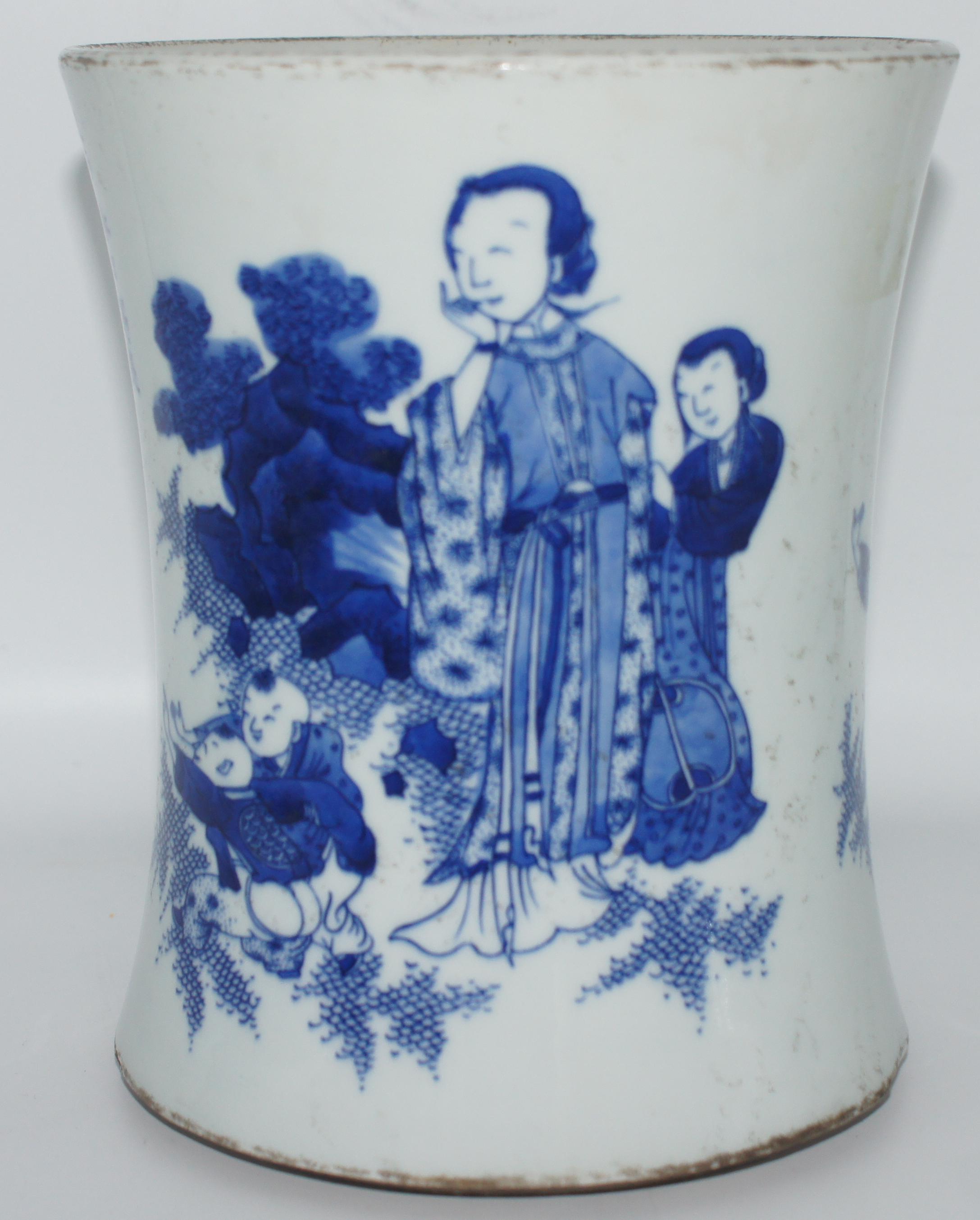 青花人物笔筒 口16*高19cm