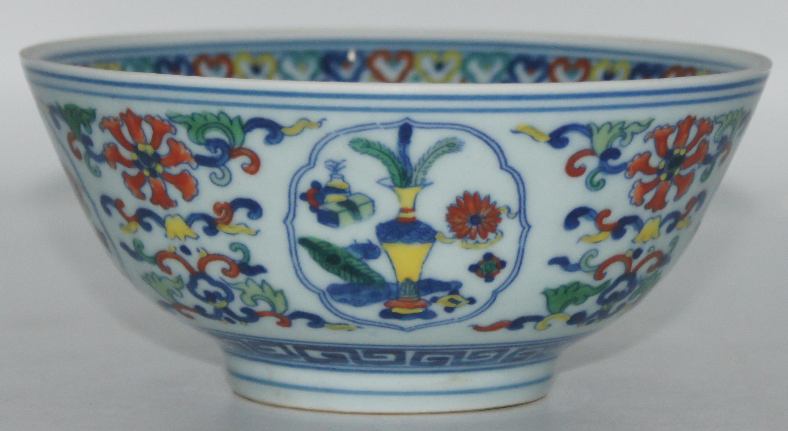 大清雍正款 斗彩花卉开窗清供图碗 口14*高6.5cm
