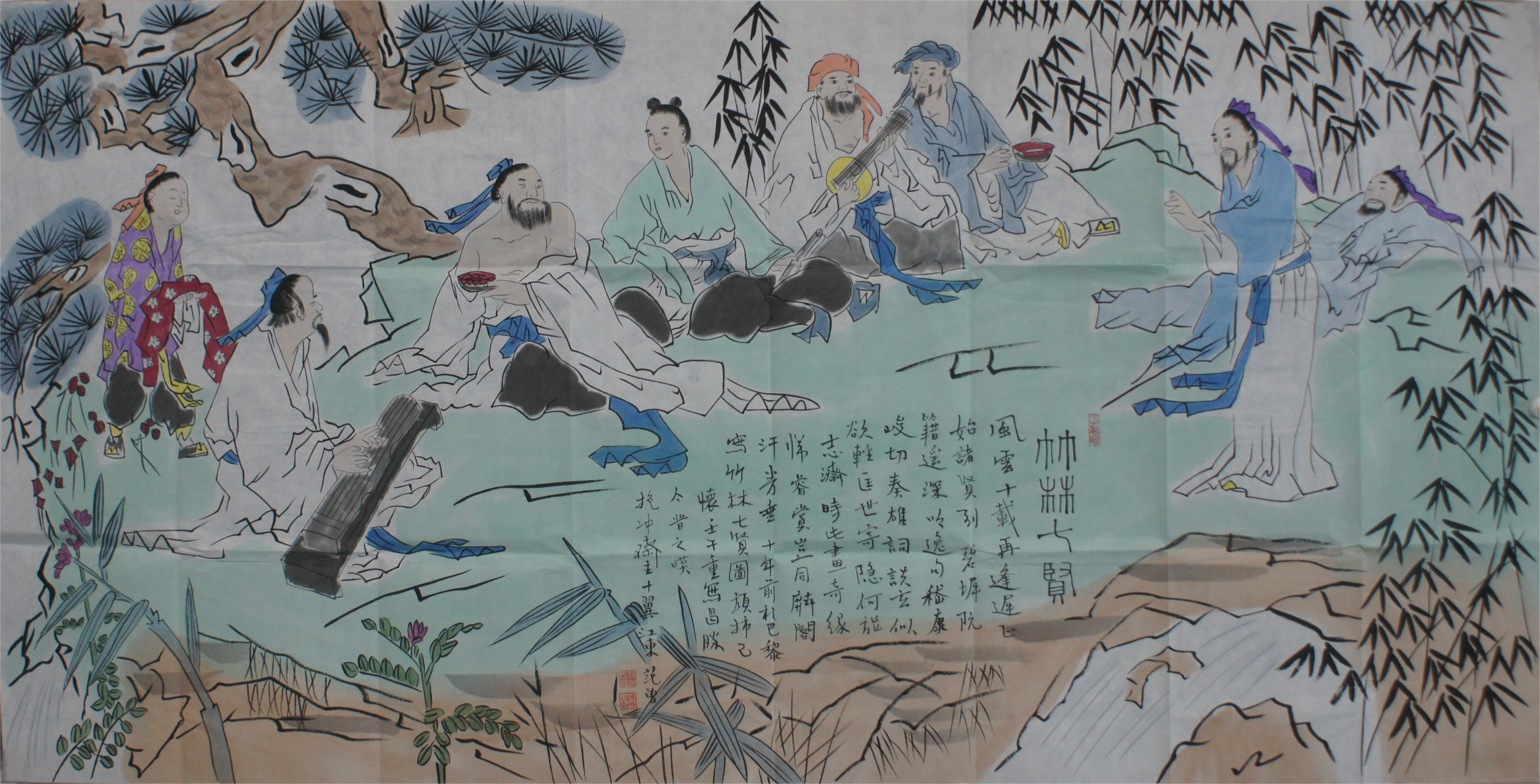 范曾款 竹林七贤 136*68cm