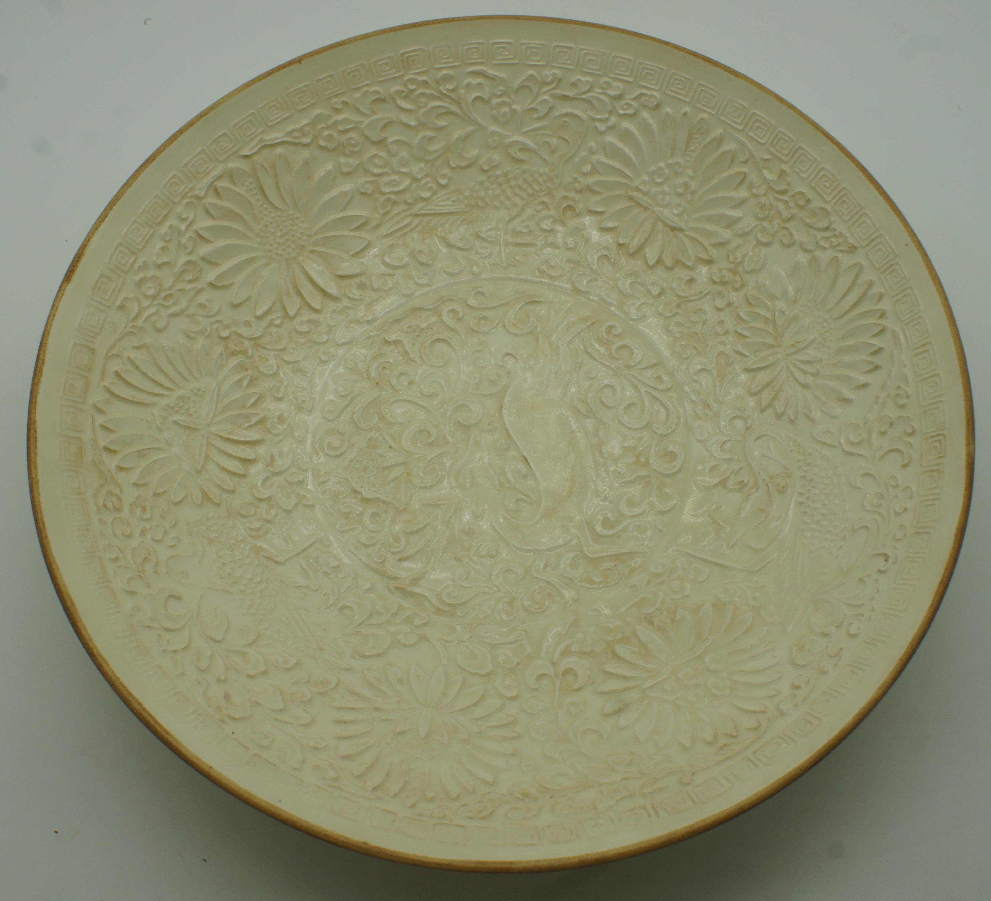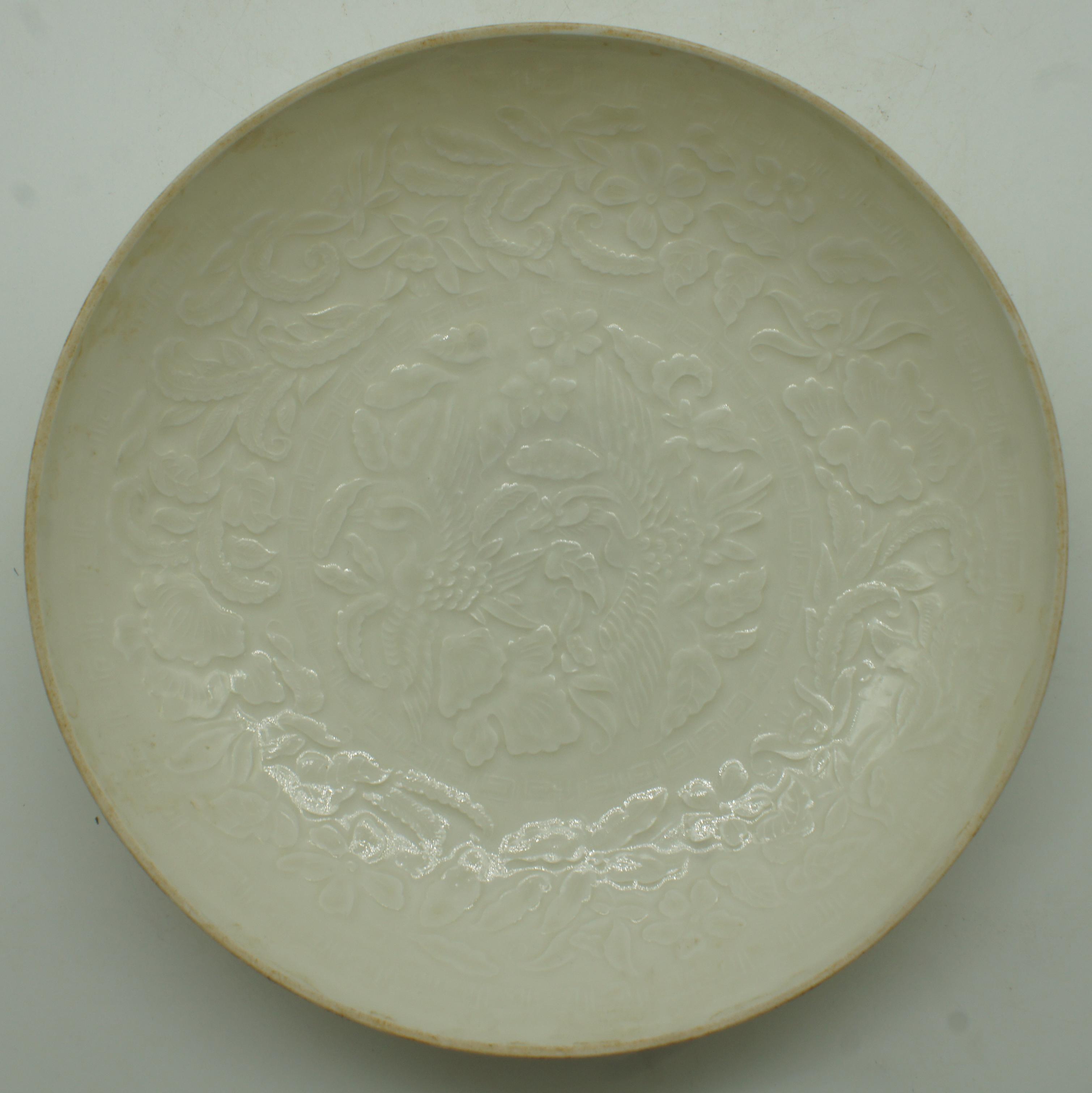 朝真款 定窑凤穿花卉盘 口21*高4.5cm