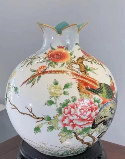 粉彩花鸟石榴瓶