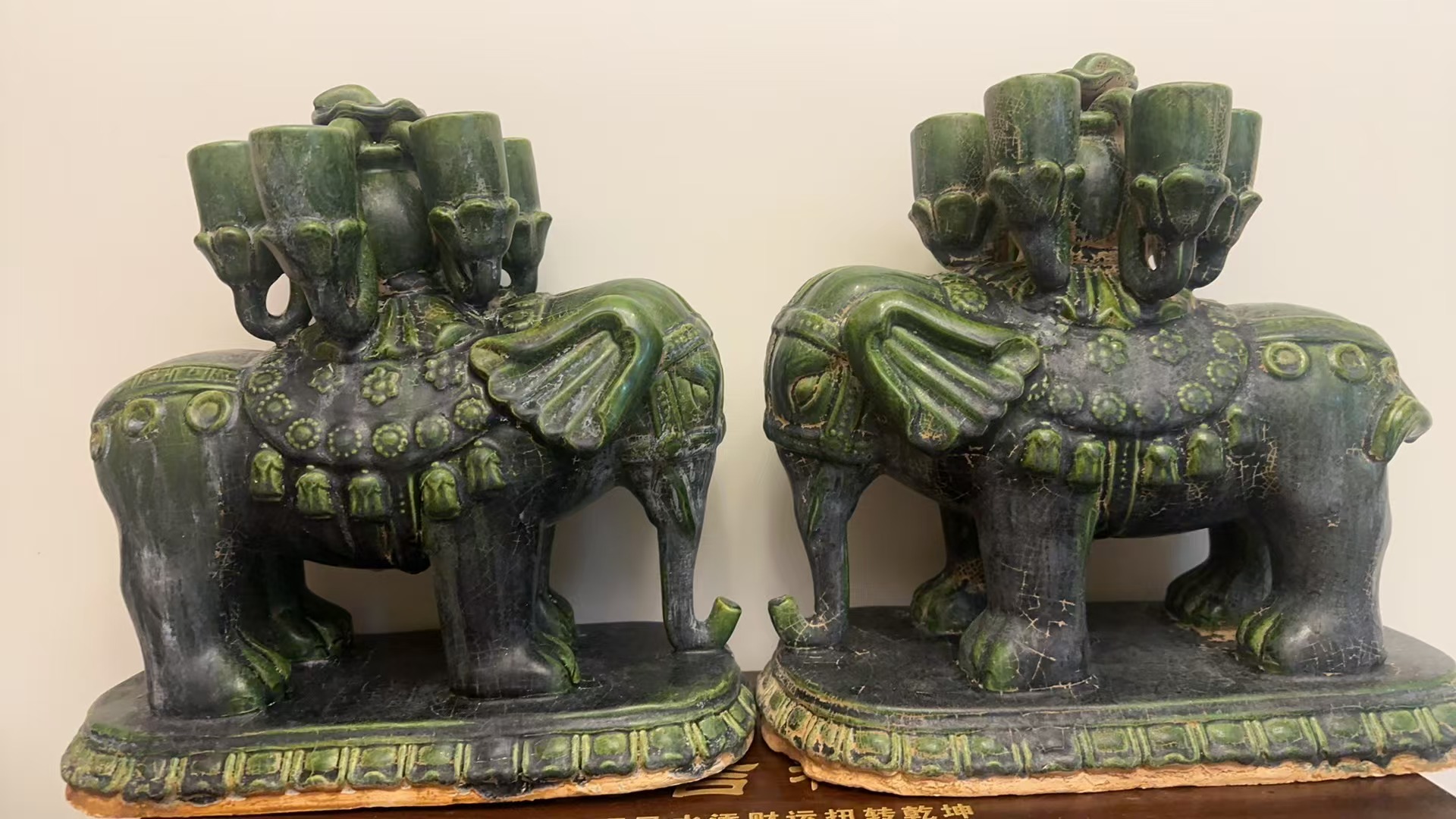 绿釉太平象 一对