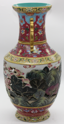 粉彩轧道镂空转心瓶