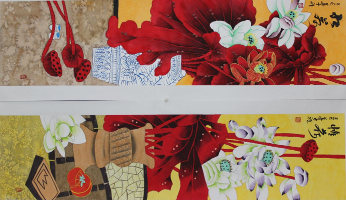 荷花四条屏-姜子雅