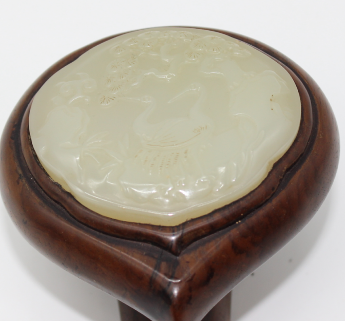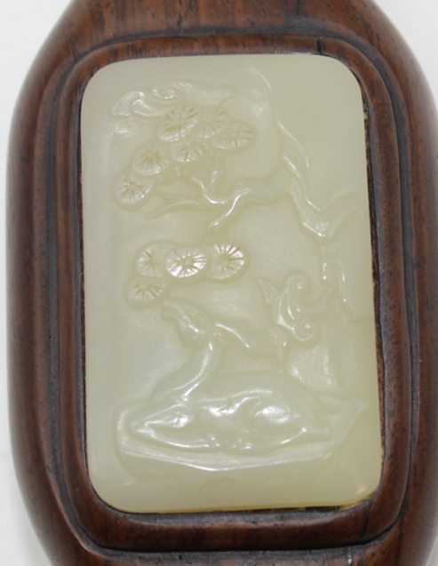 酸枝木镶白玉如意