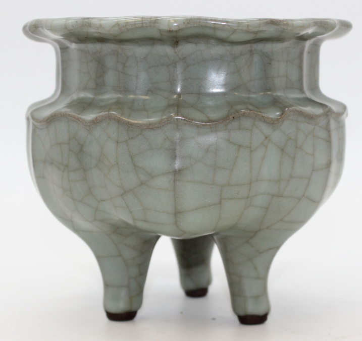 哥窑三足香炉