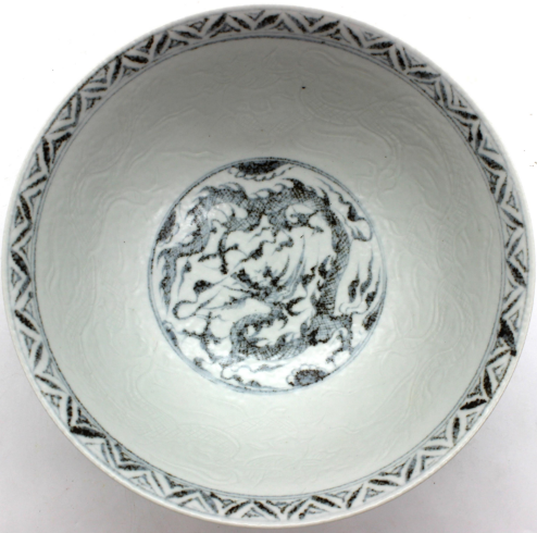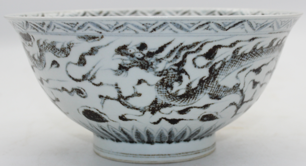 釉里红龙纹暗刻龙纹碗