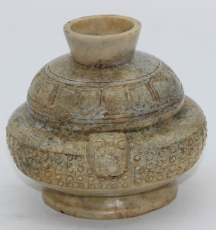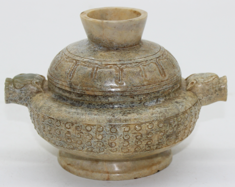 和田玉雕古纹瑞兽耳炉器