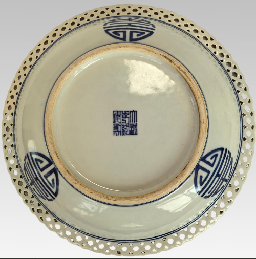 外团寿纹内麒麟缠枝花卉镂空赏盘