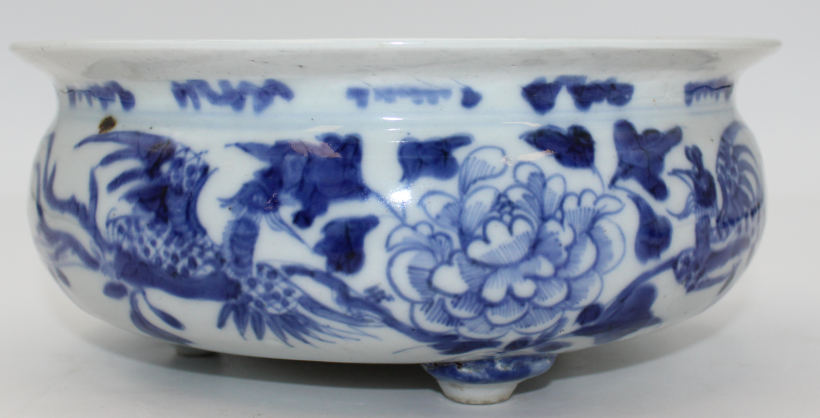 青花三足熏炉