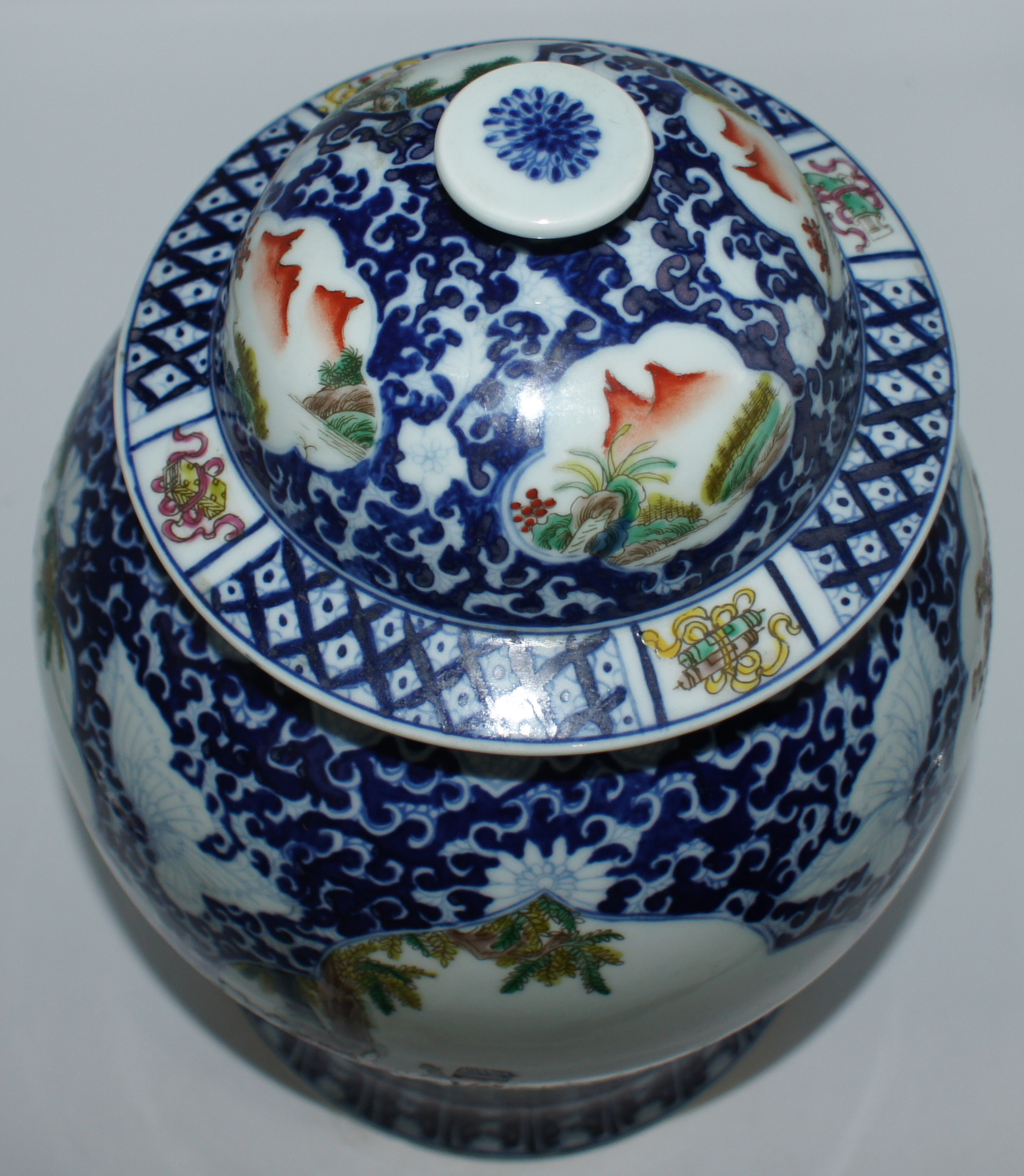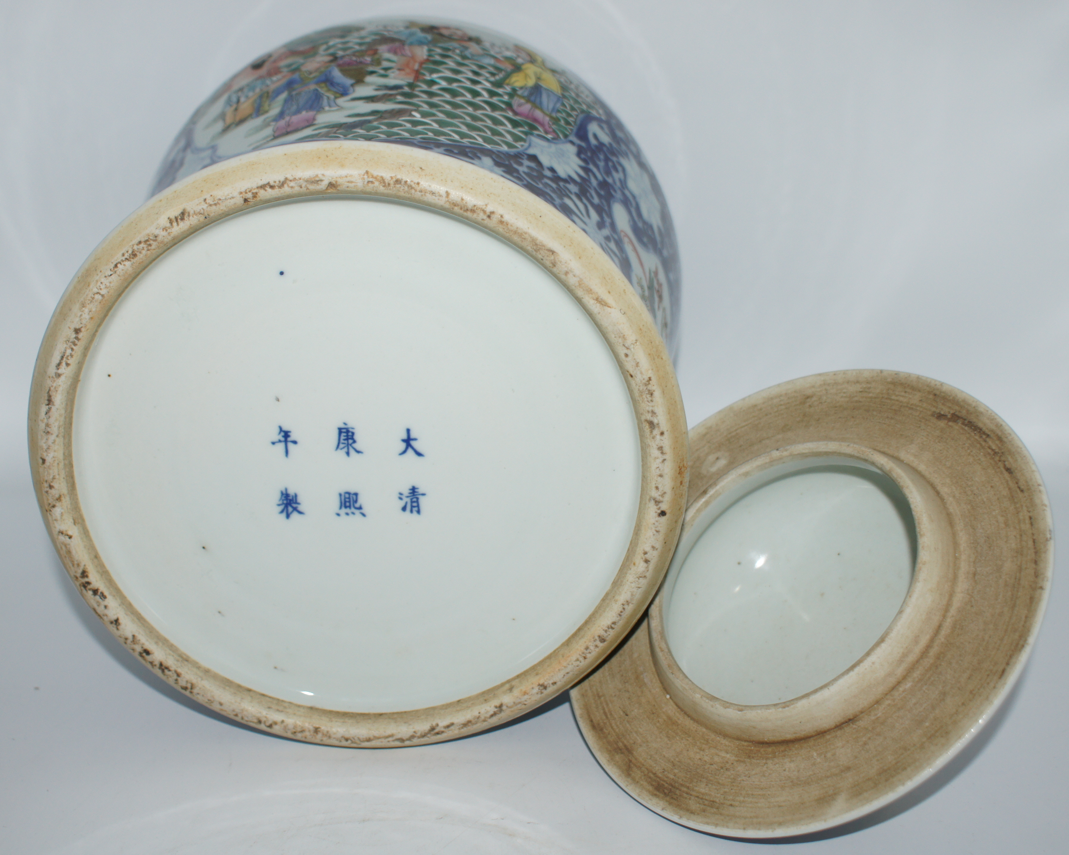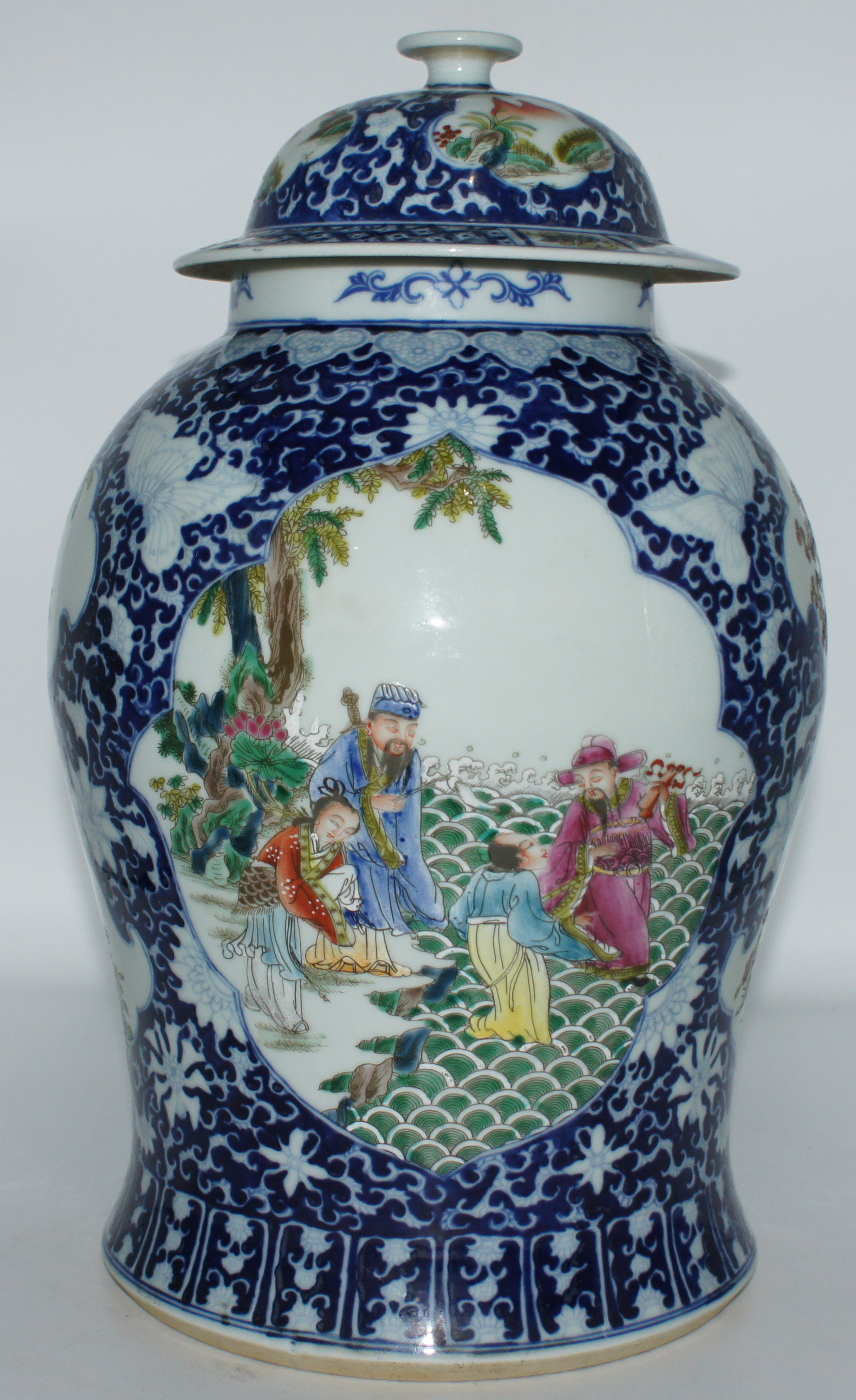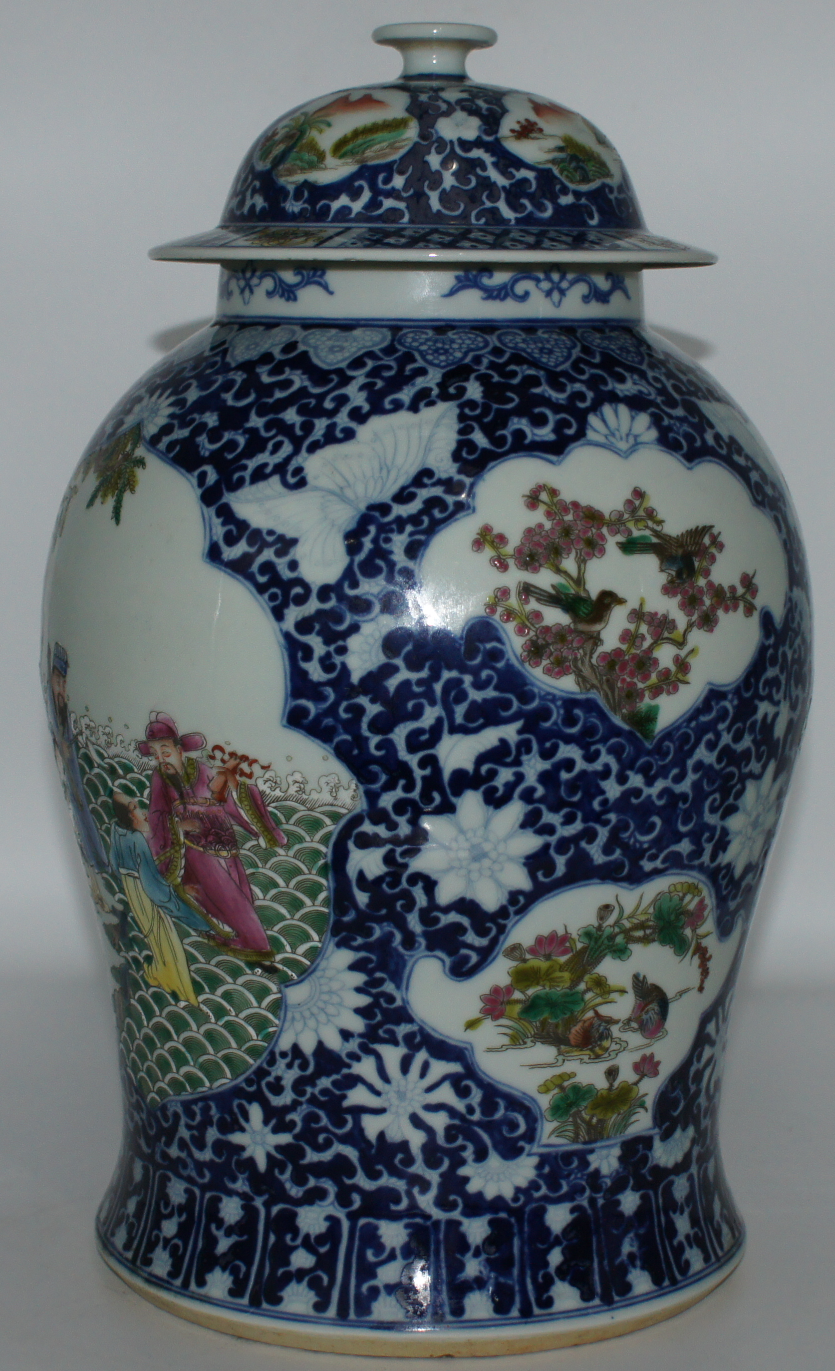 青花花卉人物五彩龙纹将军罐 口14*高40.5cm