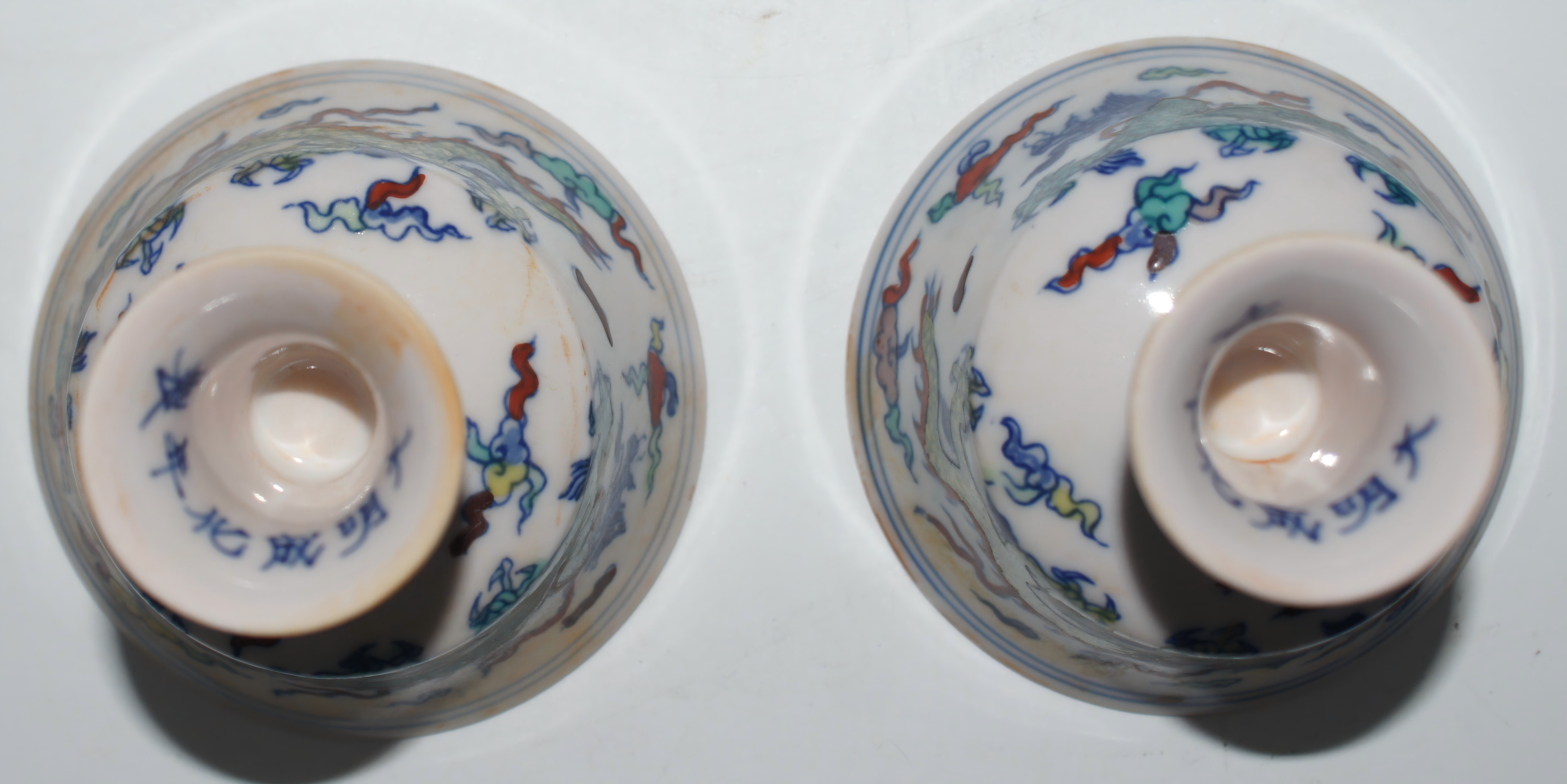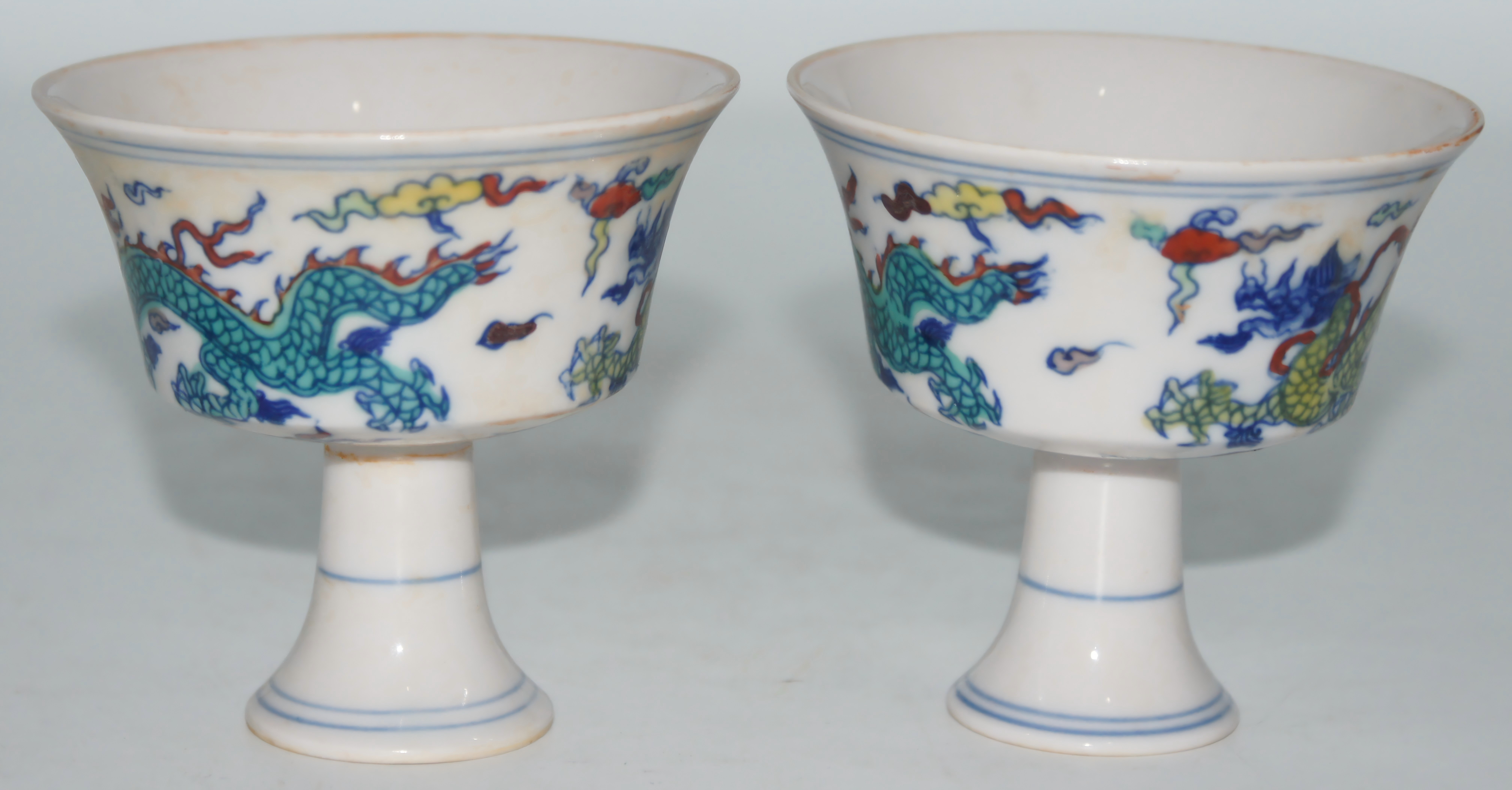 斗彩龙纹高足杯 口8*高8cm
