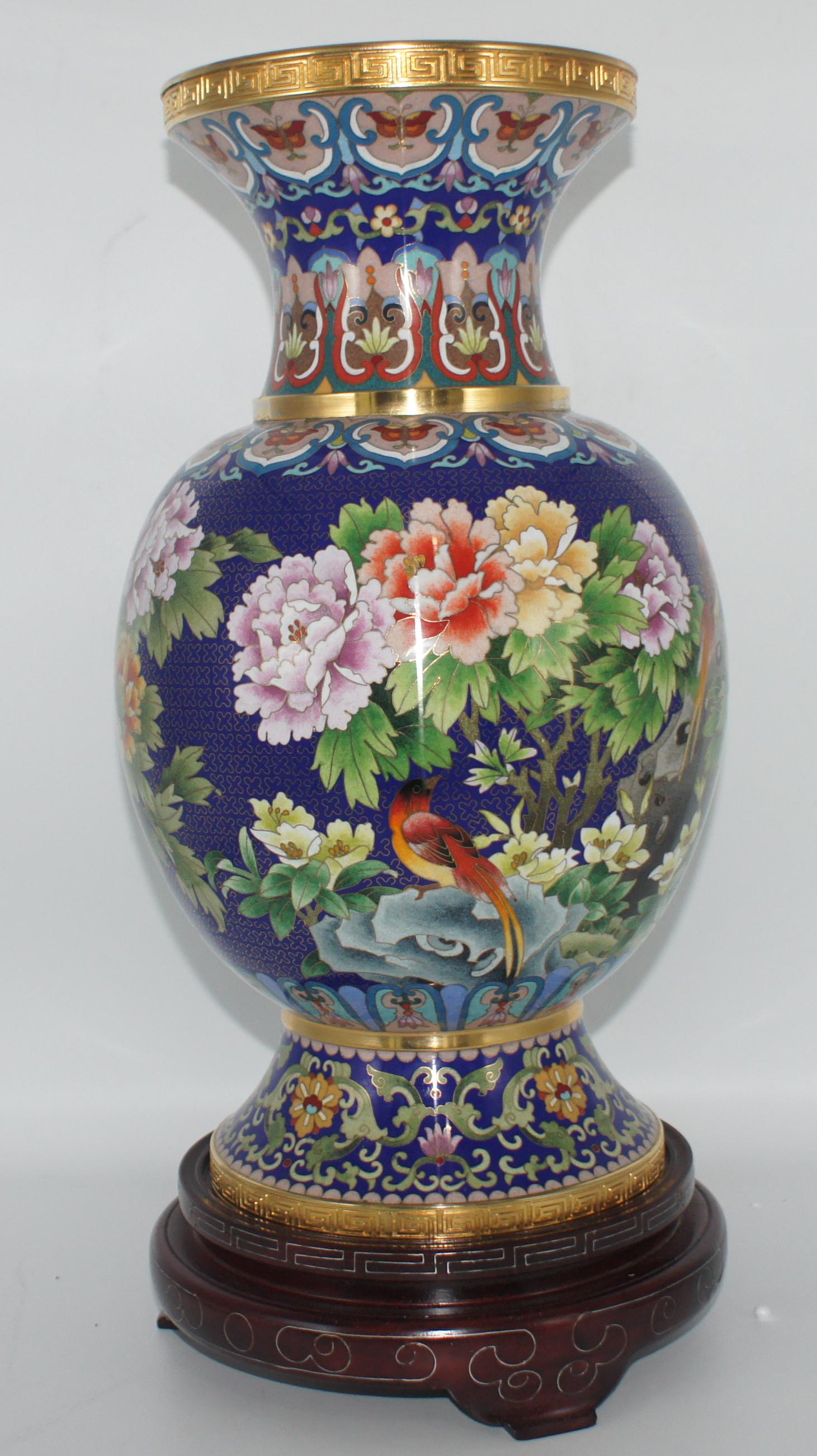 钱美华 景泰蓝富贵花鸟尊 口17*高39.5cm