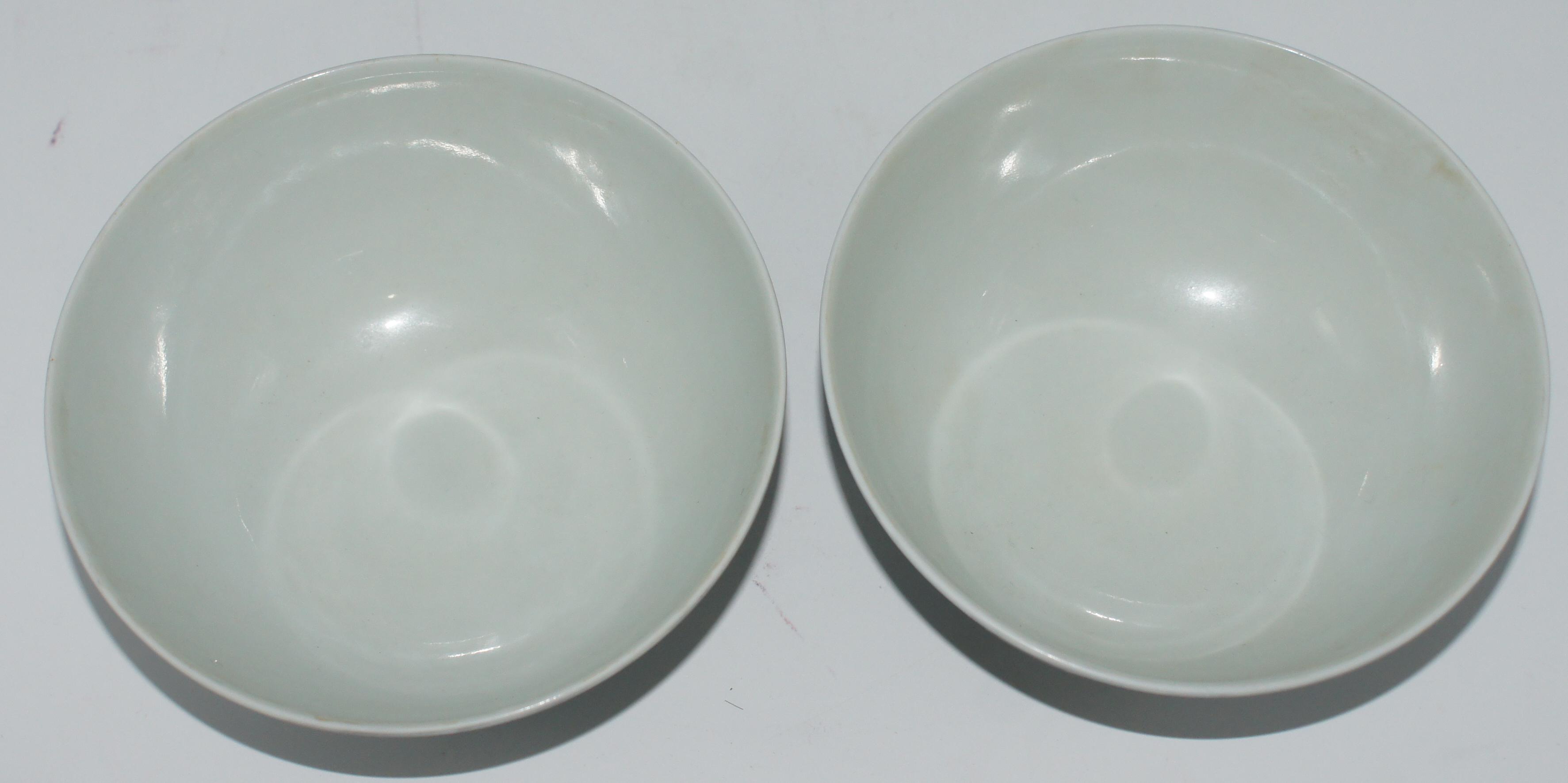 大清雍正年制款 墨彩云鹤纹碗一对 口14.5*高6.5cm