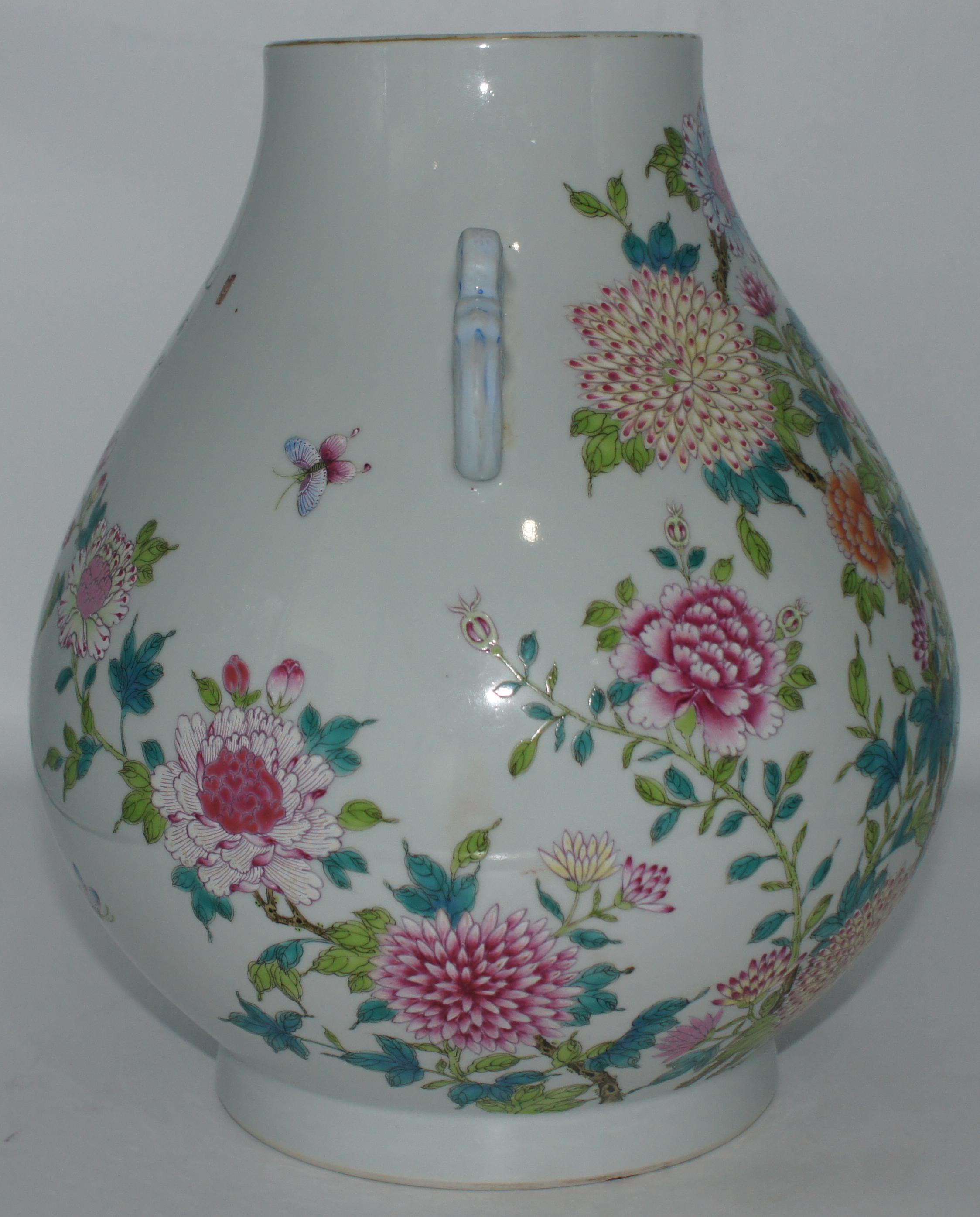 大清乾隆款 珐琅彩花开富贵如意耳尊 口13*高32.5cm