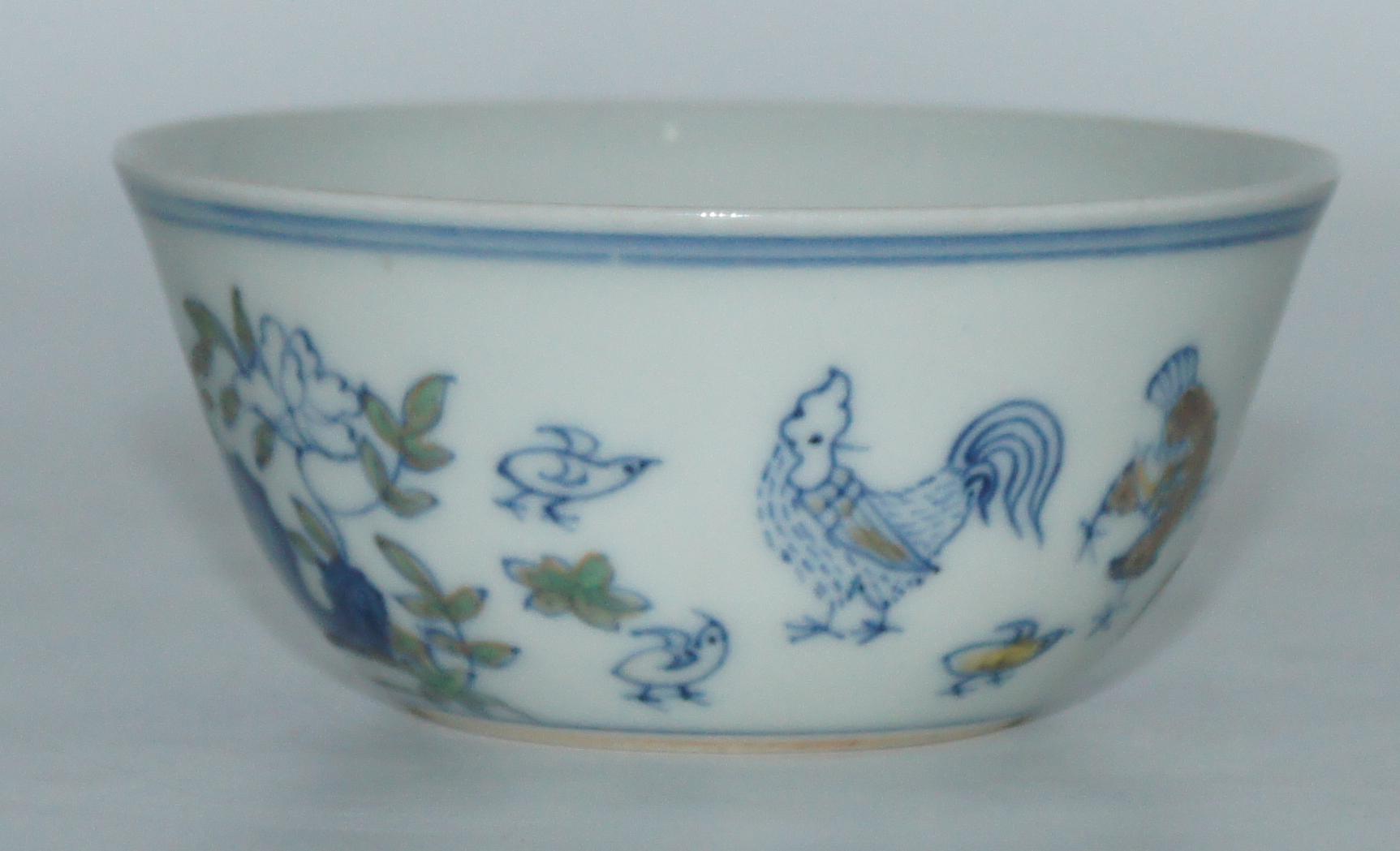大明成化款 斗彩鸡缸杯 口8.5*高4cm