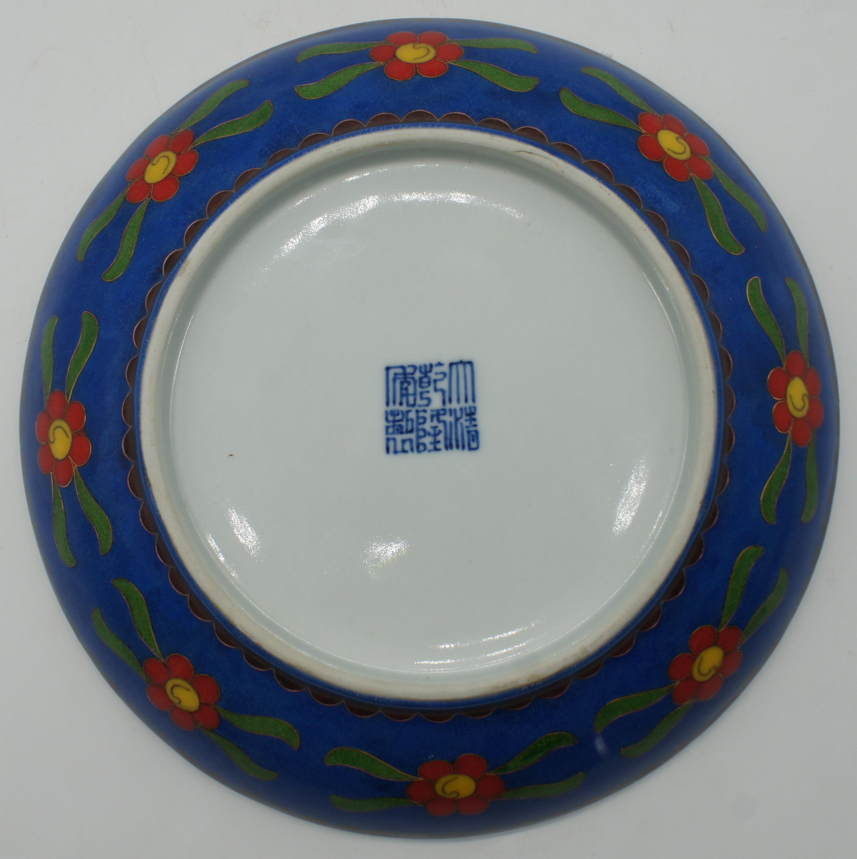 大清乾隆年制款瓷胎画珐琅花卉纹赏盘 22*5cm