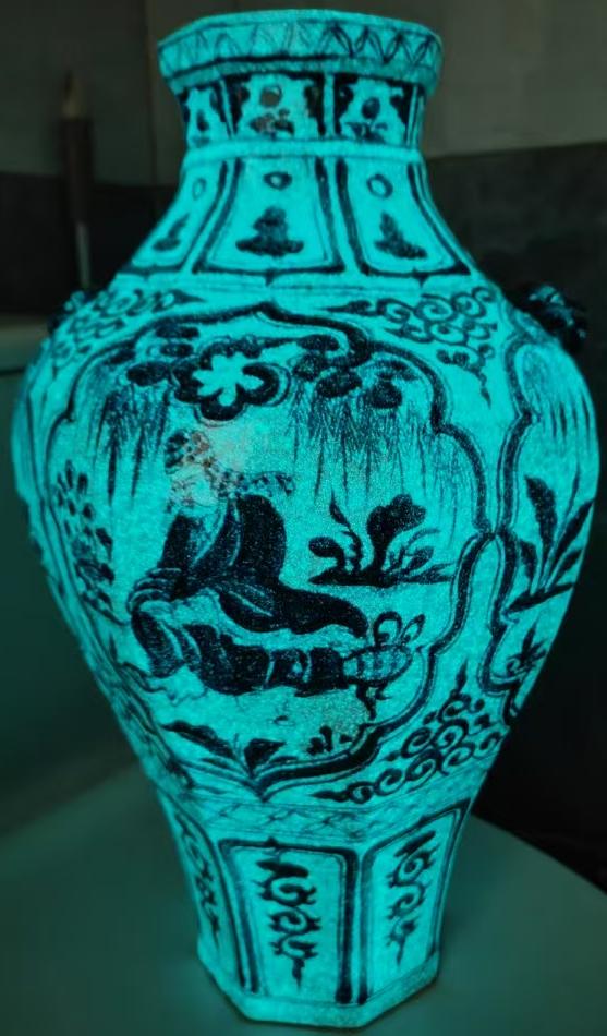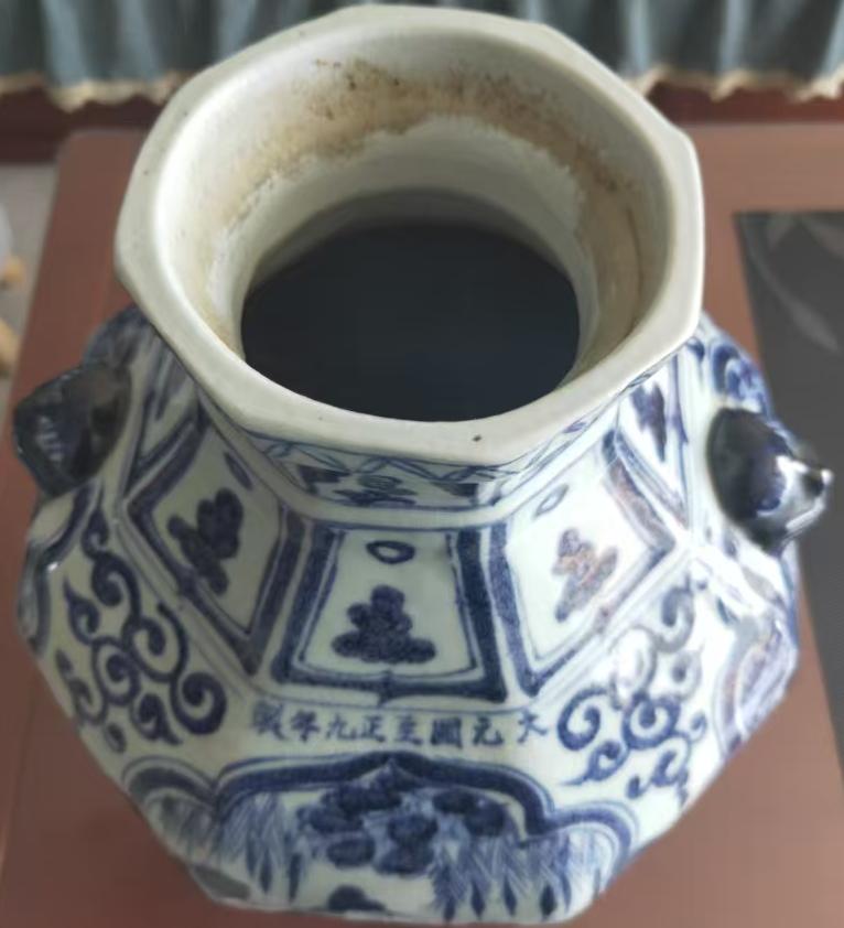 大元国至正九年制款 青花人物故事虎首耳八方罐 高43.5