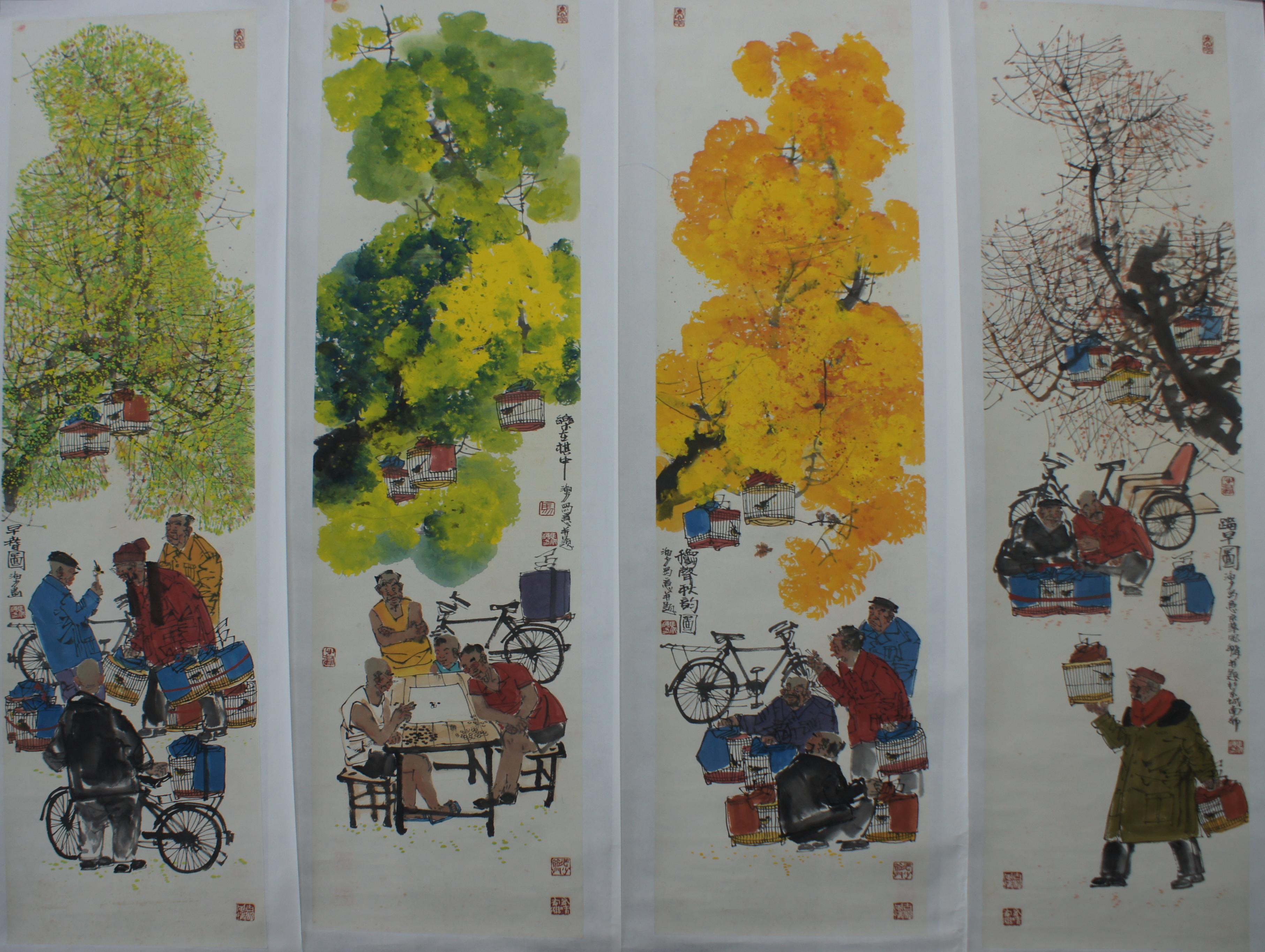 马海方 乐在其中四条屏 137*34cm