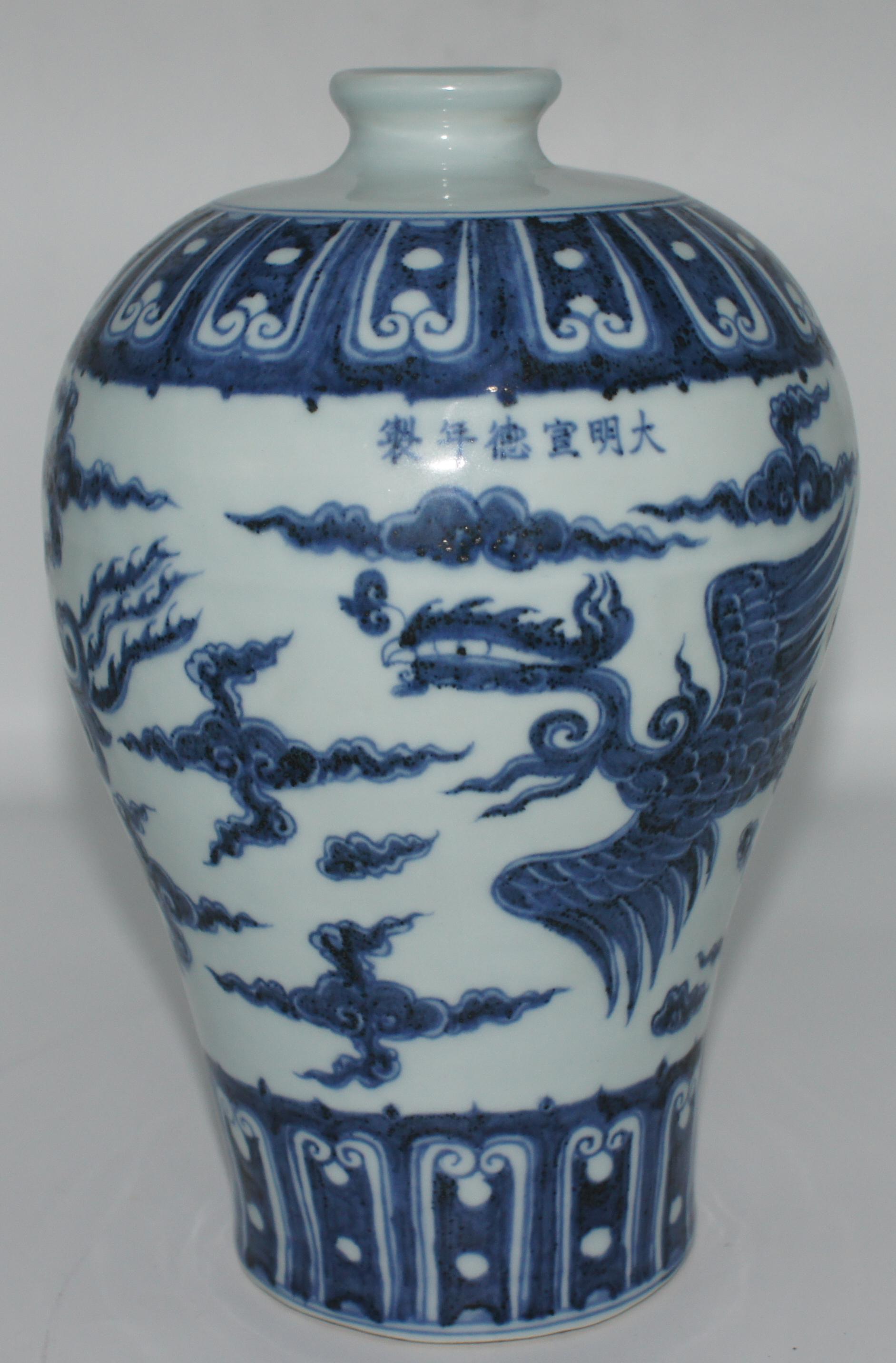 大明宣德款 青花凤纹梅瓶 口5*高27cm