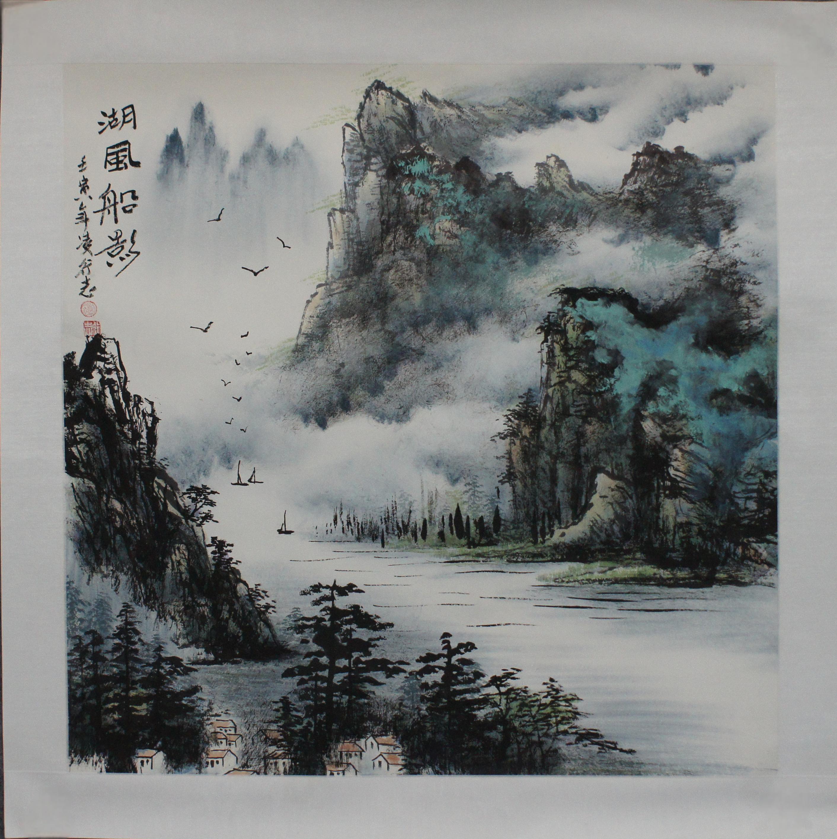 凌行志 湖风船影 68*68CM