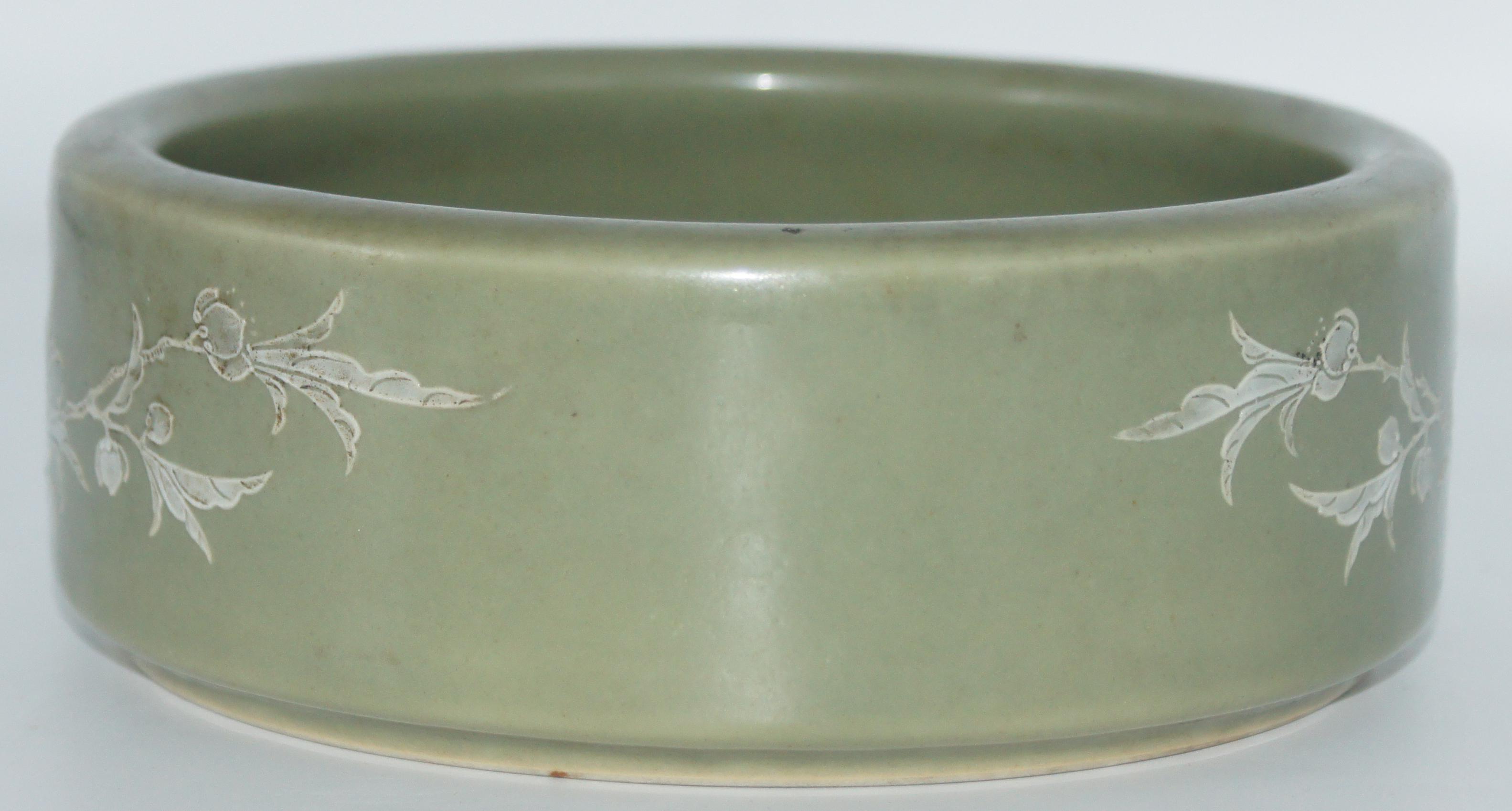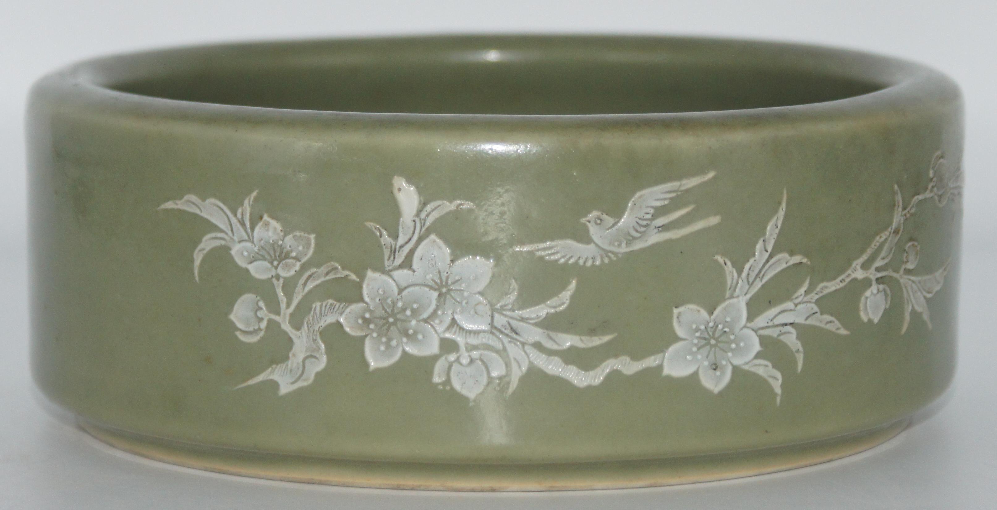 清代 青釉堆白花鸟笔洗 口17*高6cm