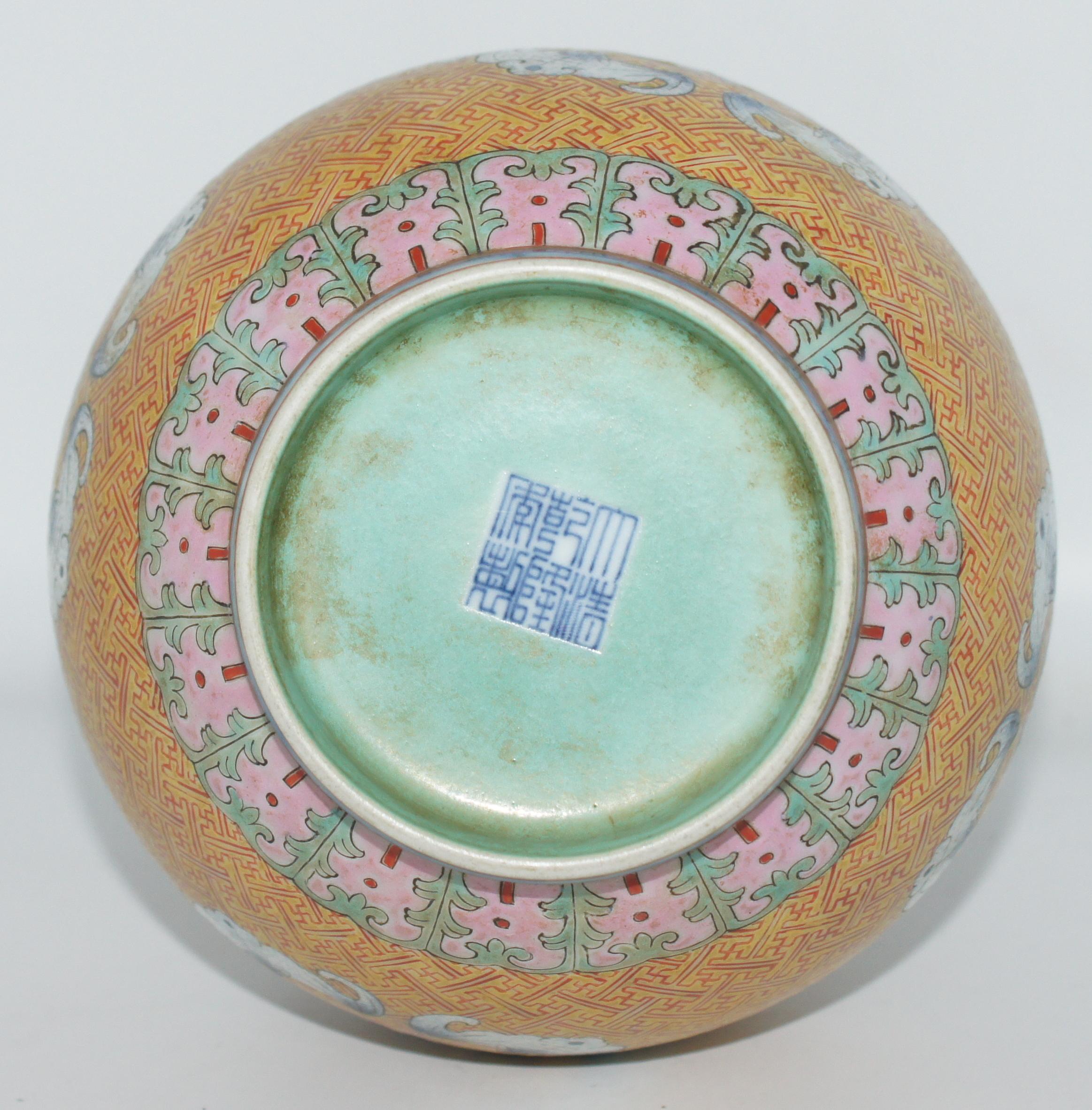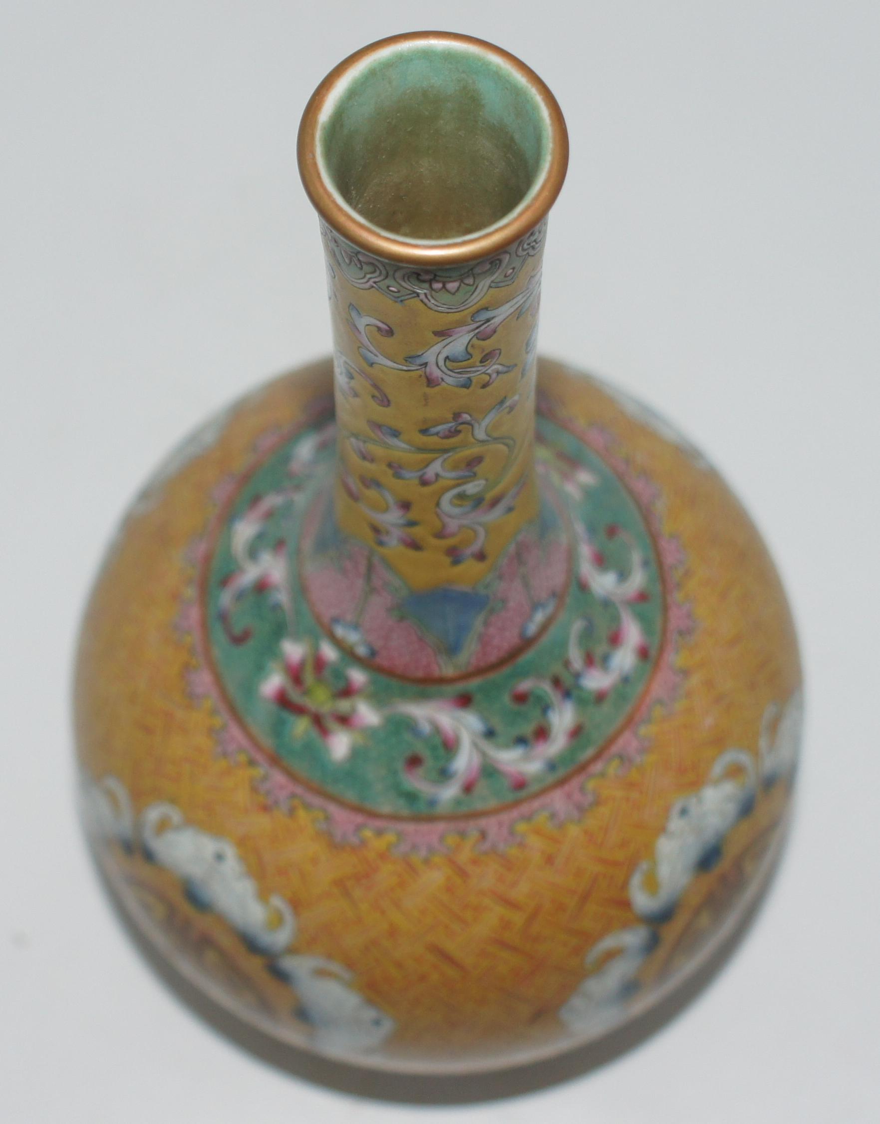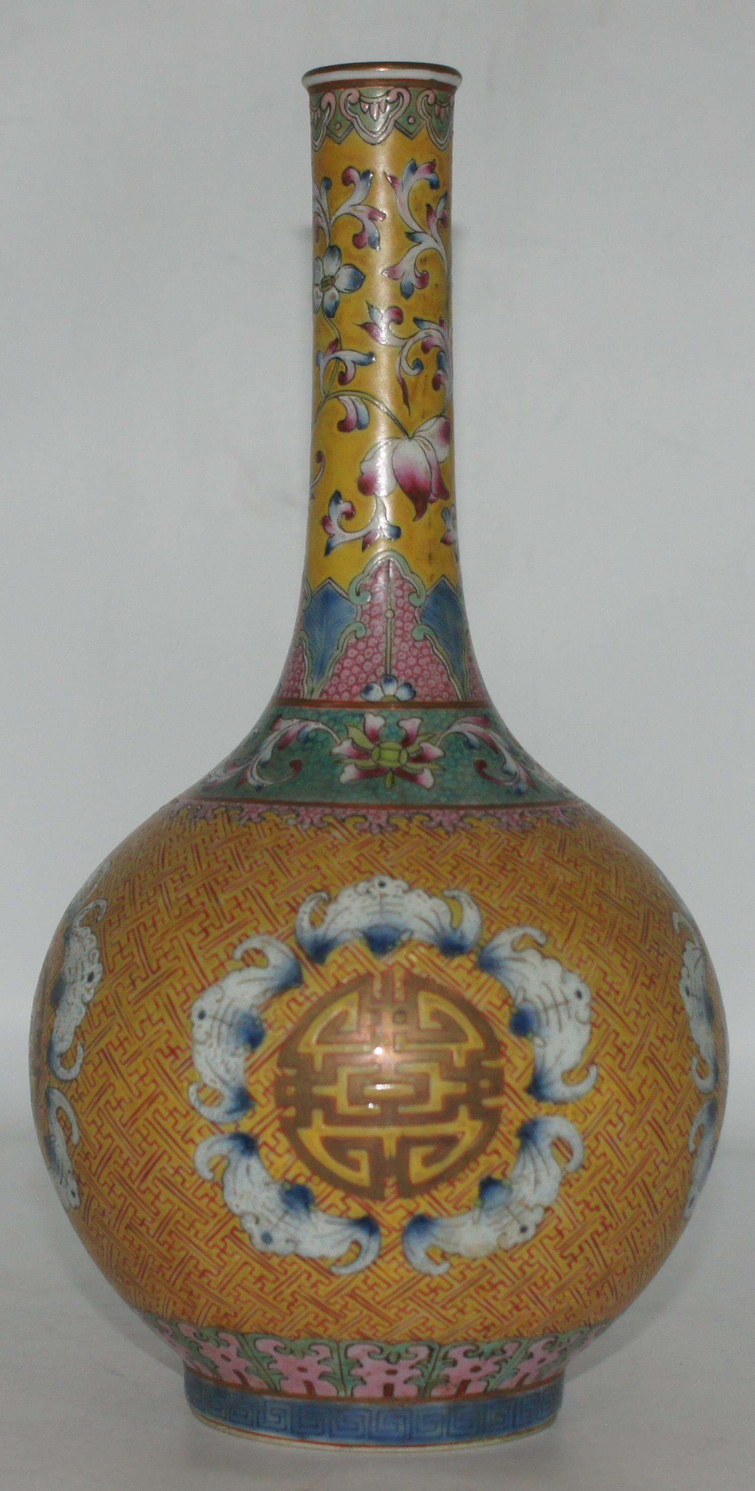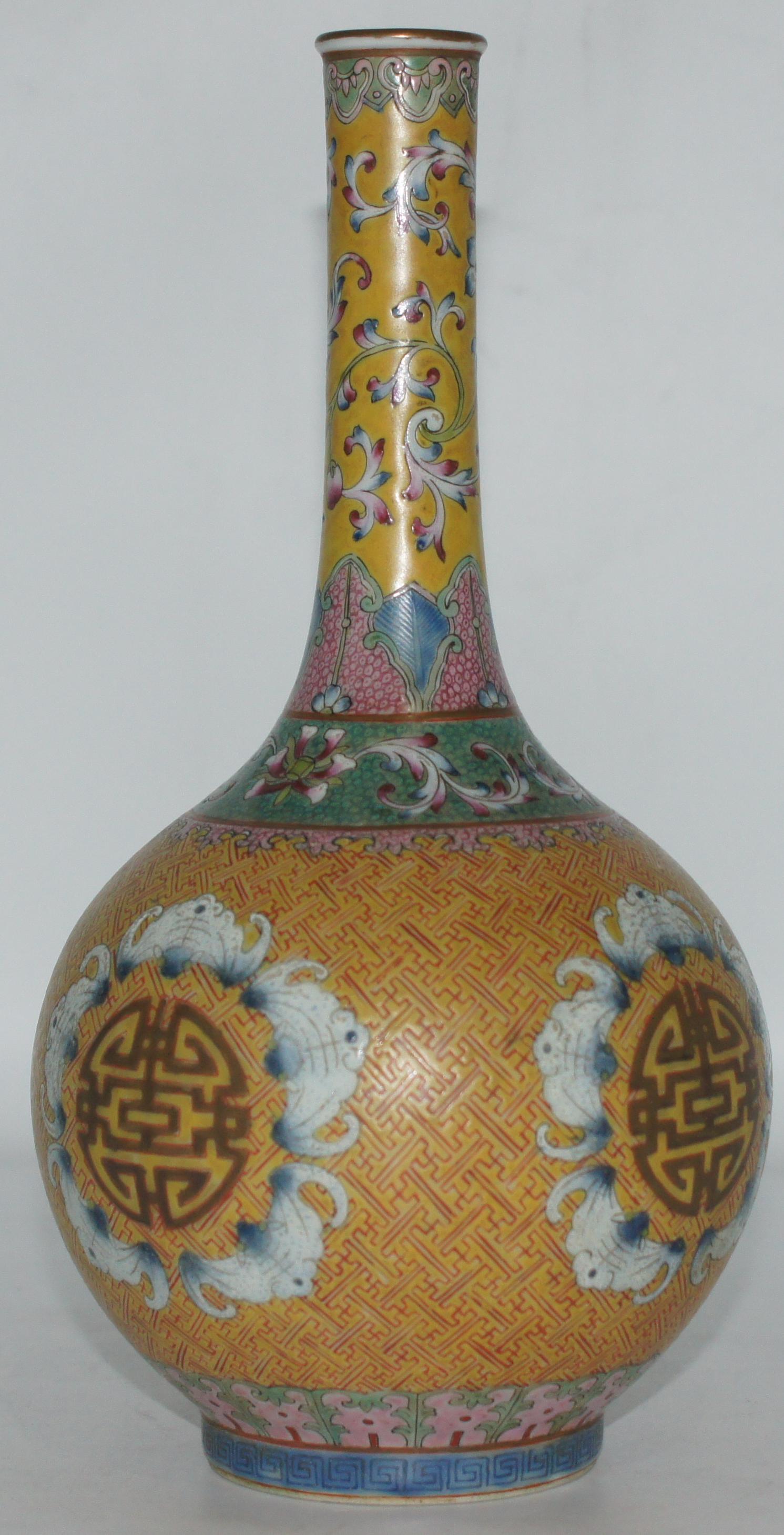 大清乾隆款 粉彩锦地五福团寿 口3.5*高28cm