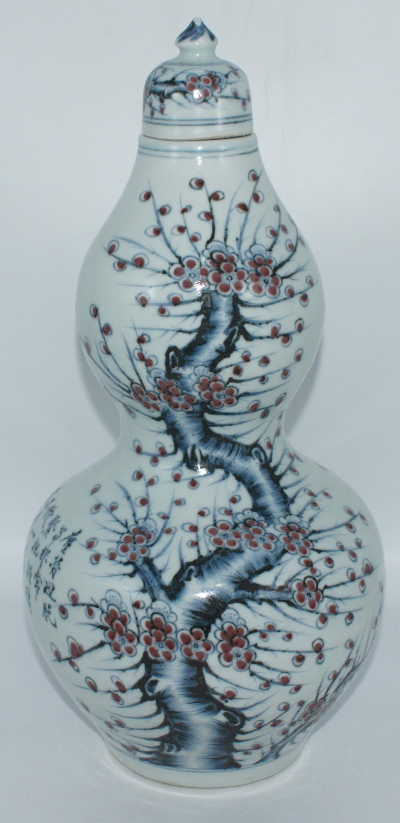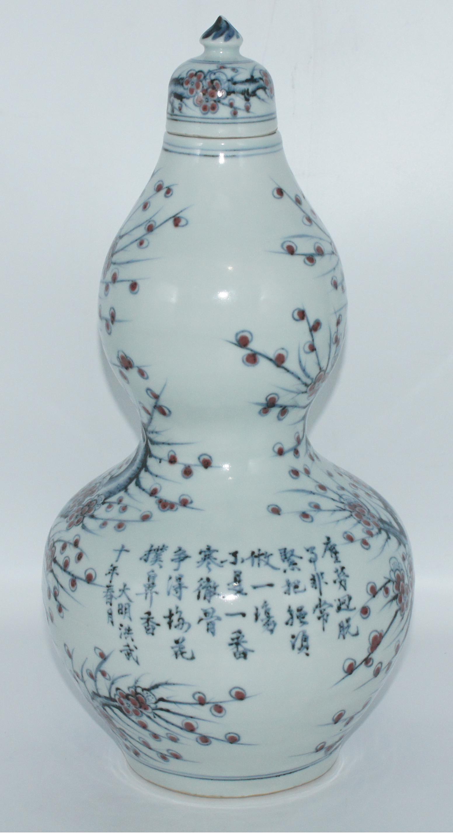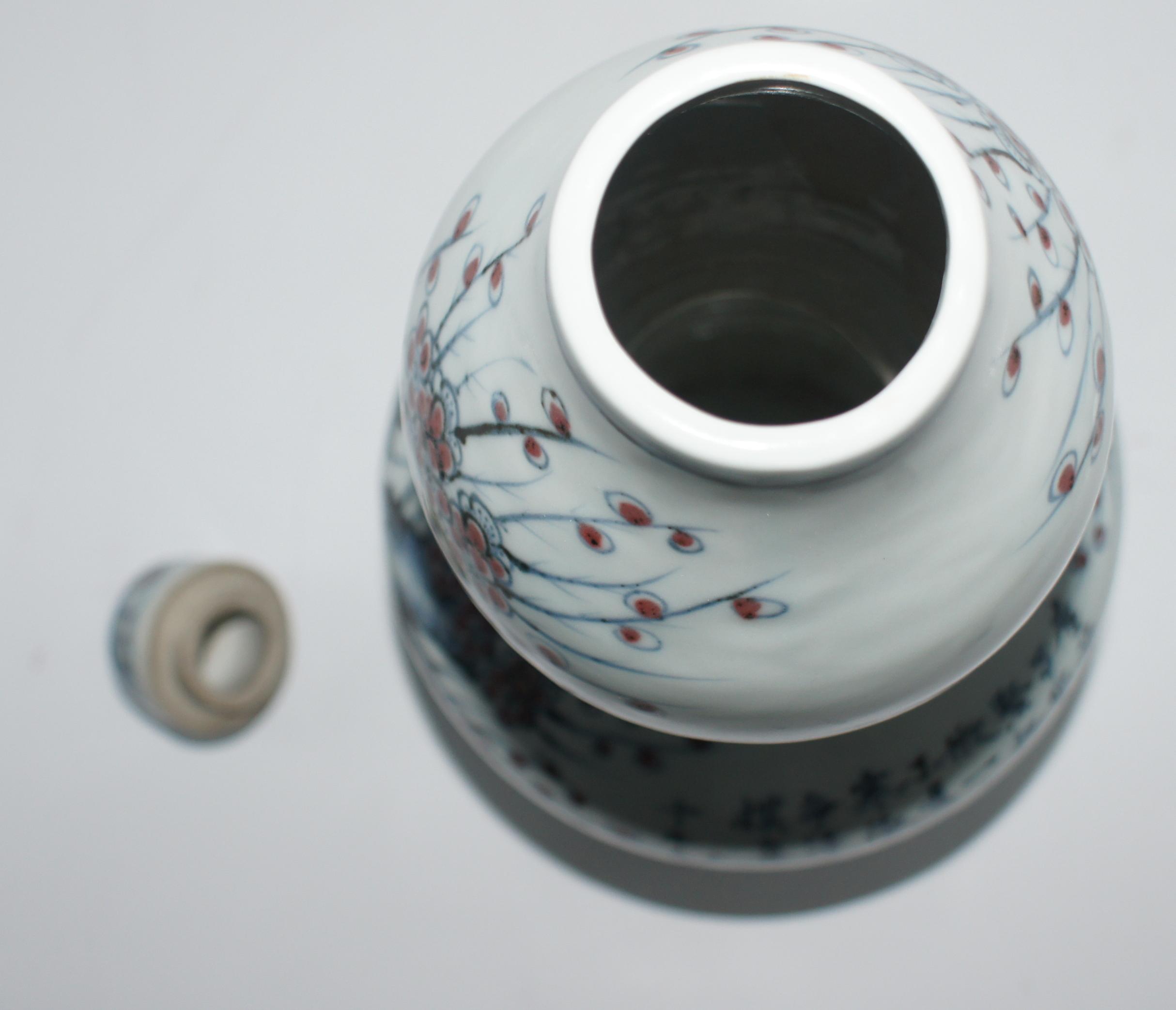 青花釉里红梅开五福梅瓶 口5*高39cm