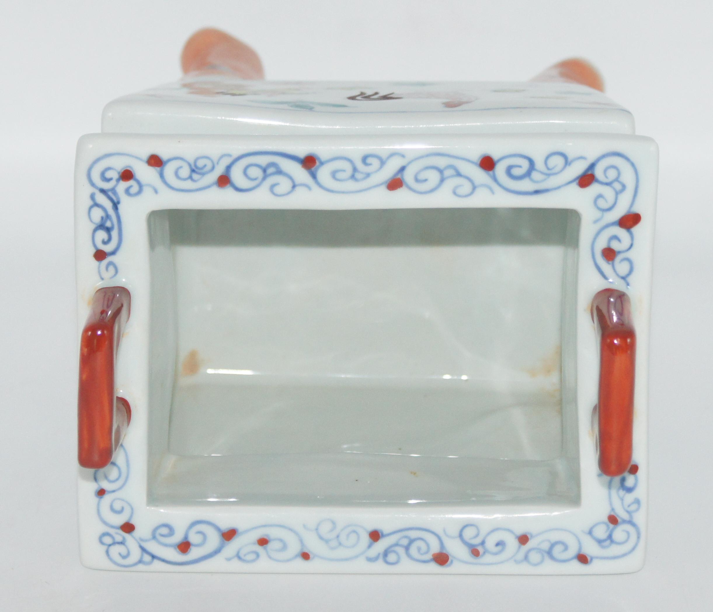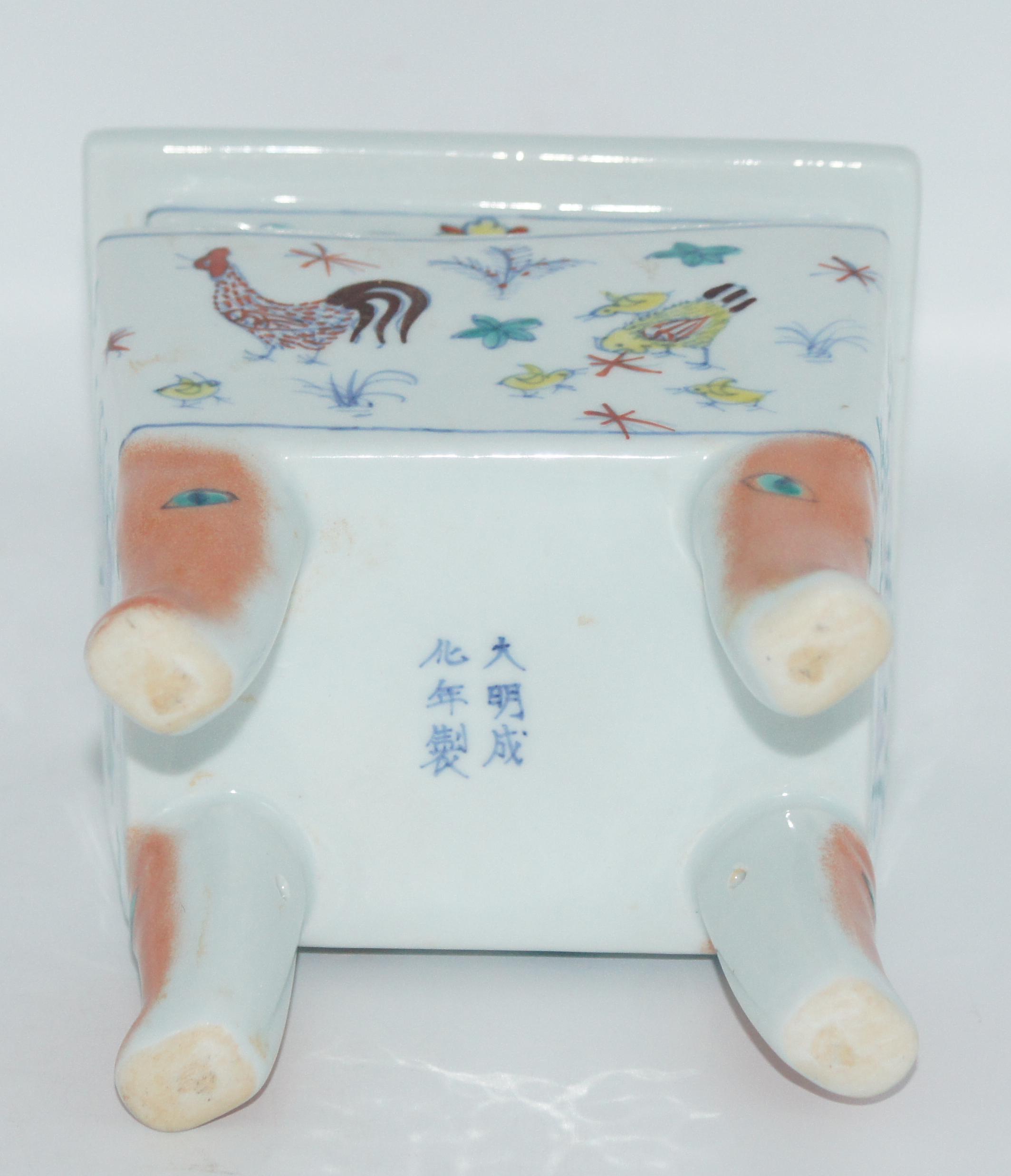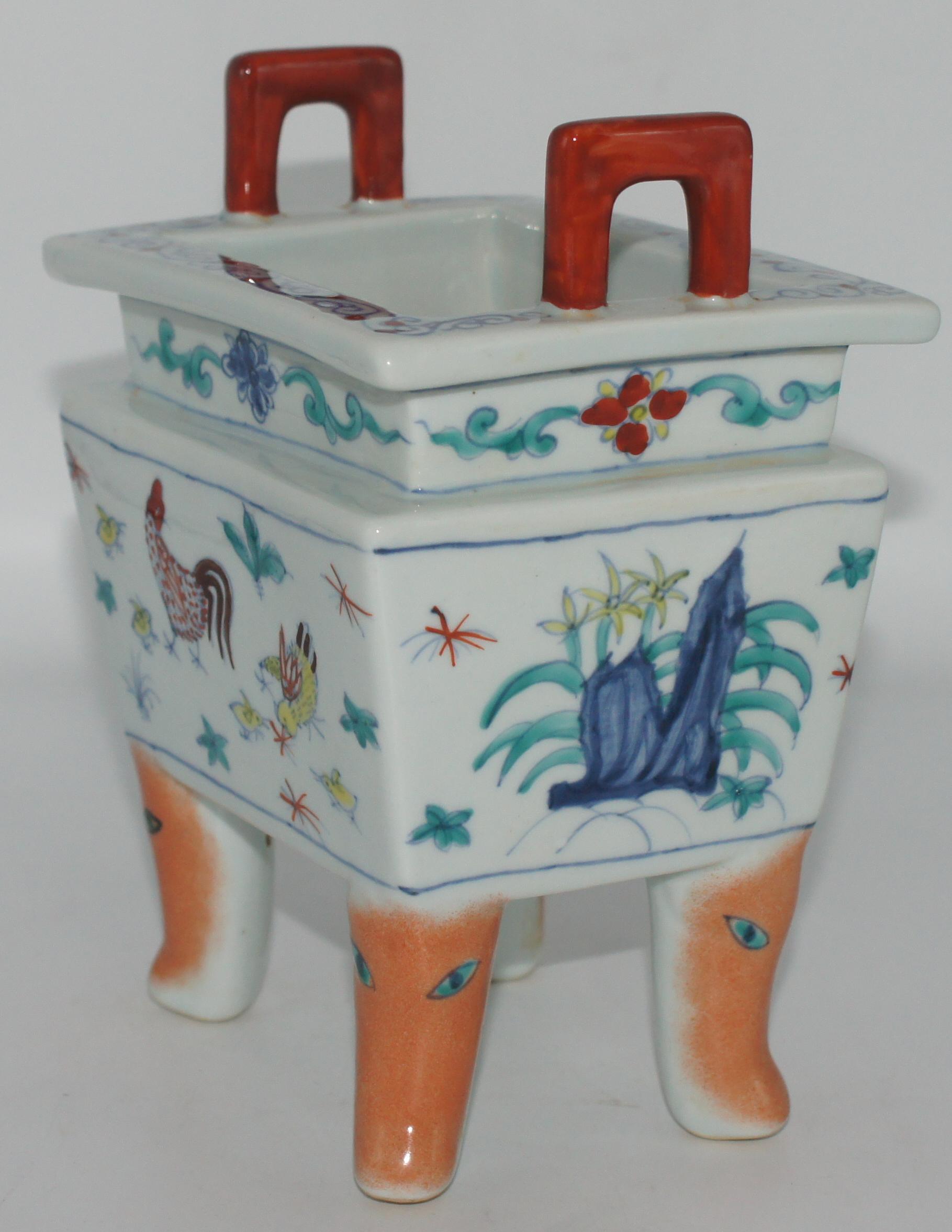 大明成化款 斗彩鸡纹鼎式炉 长14*宽11*高19.5cm