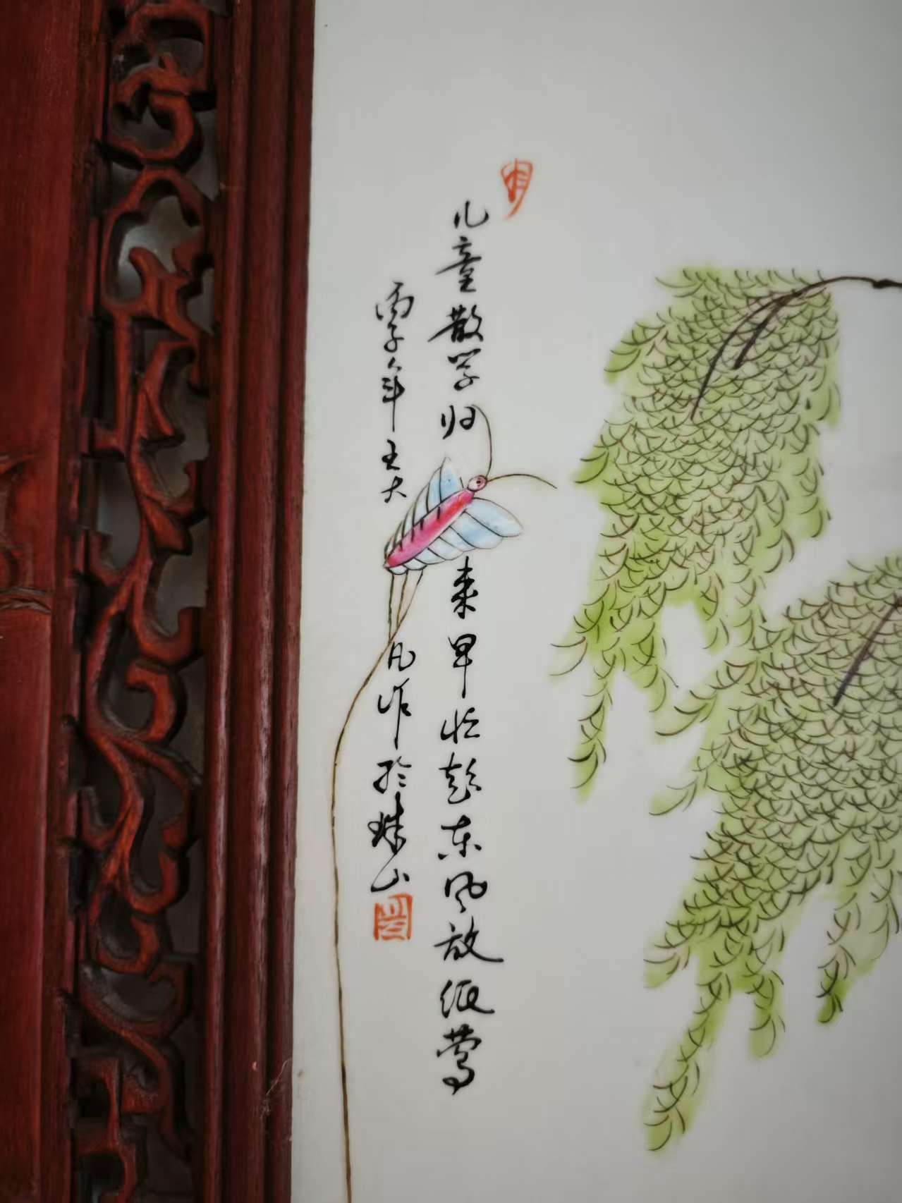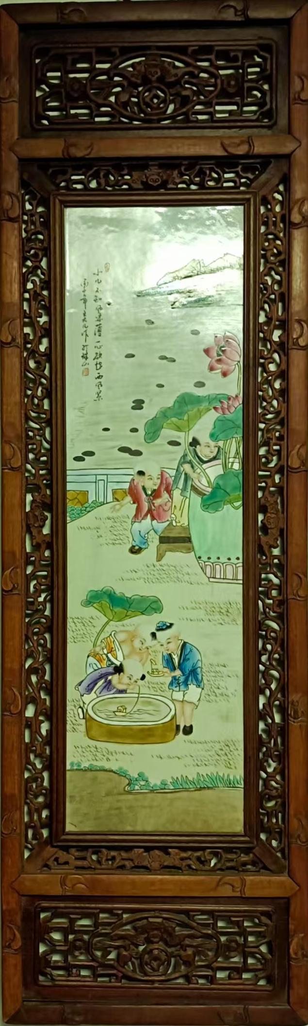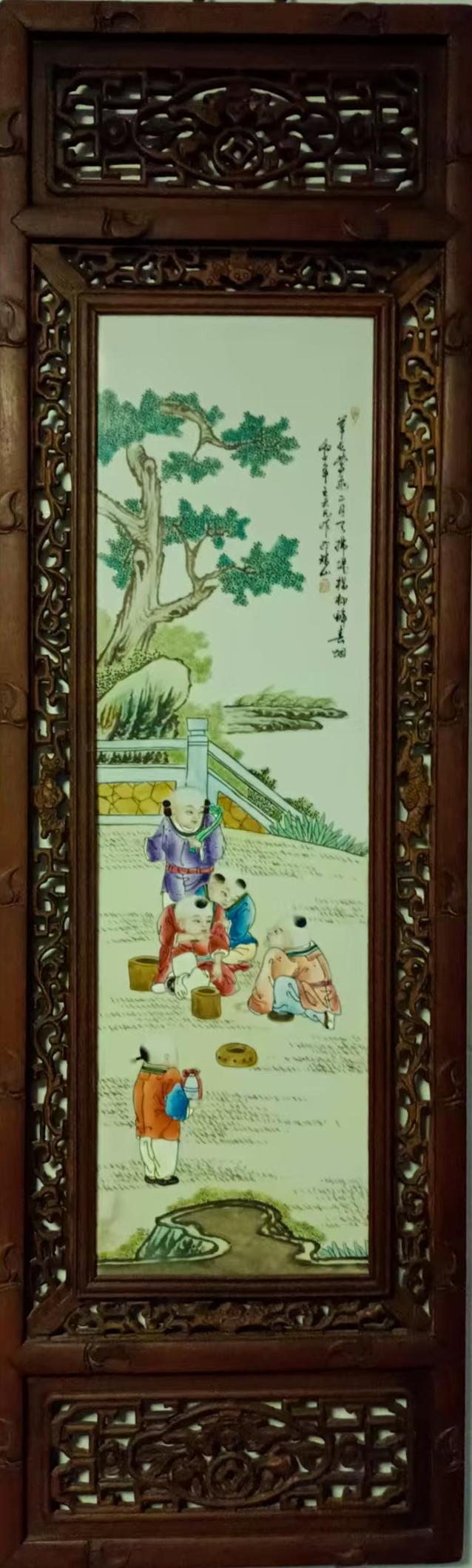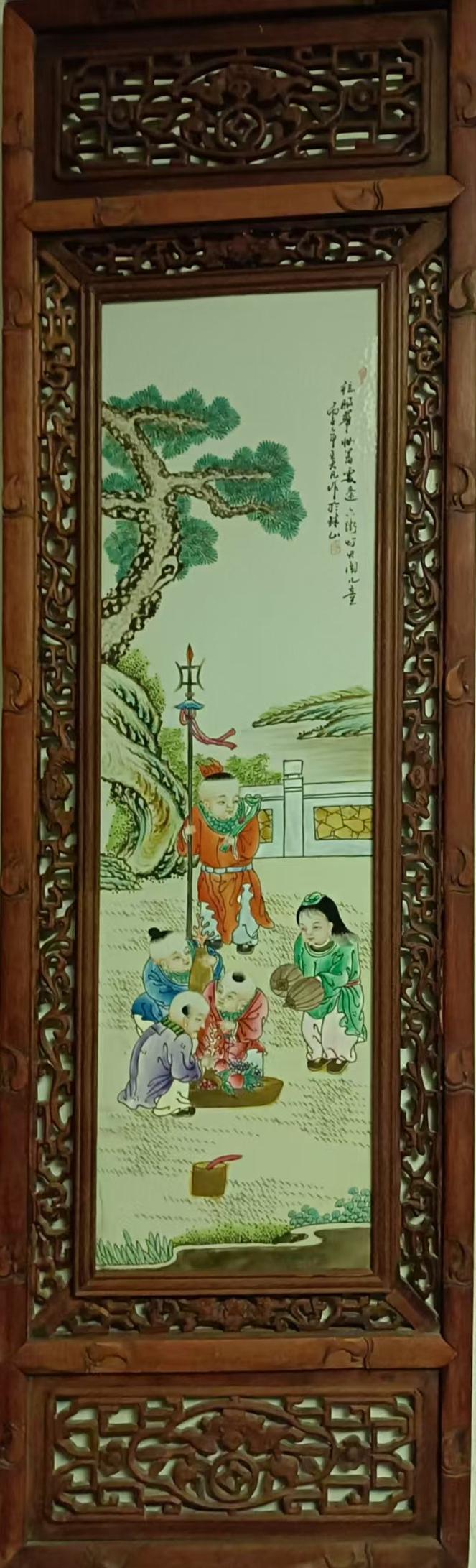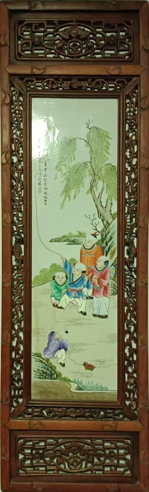 王大凡款 五子登科瓷板画 24.5x76.5cm