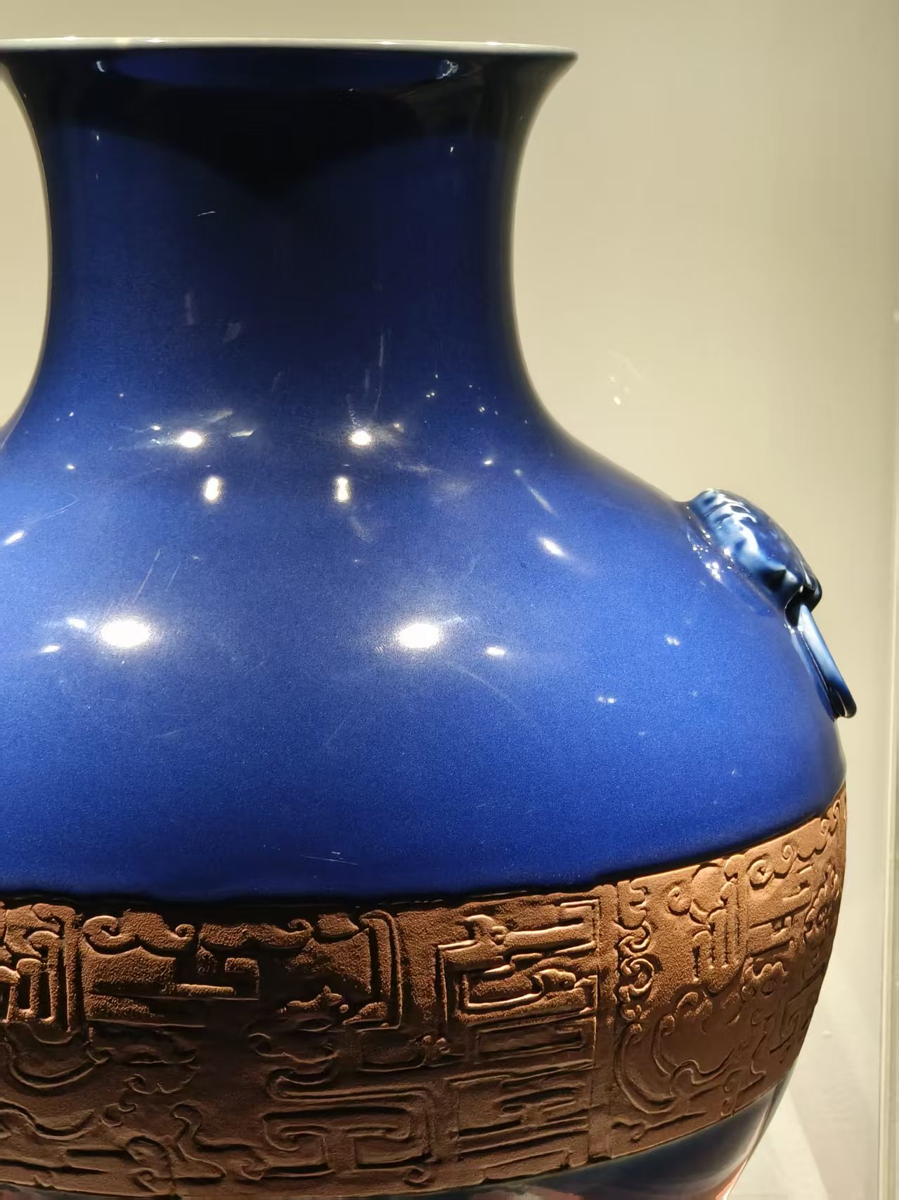 霁蓝釉开窗龙纹兽耳瓶
